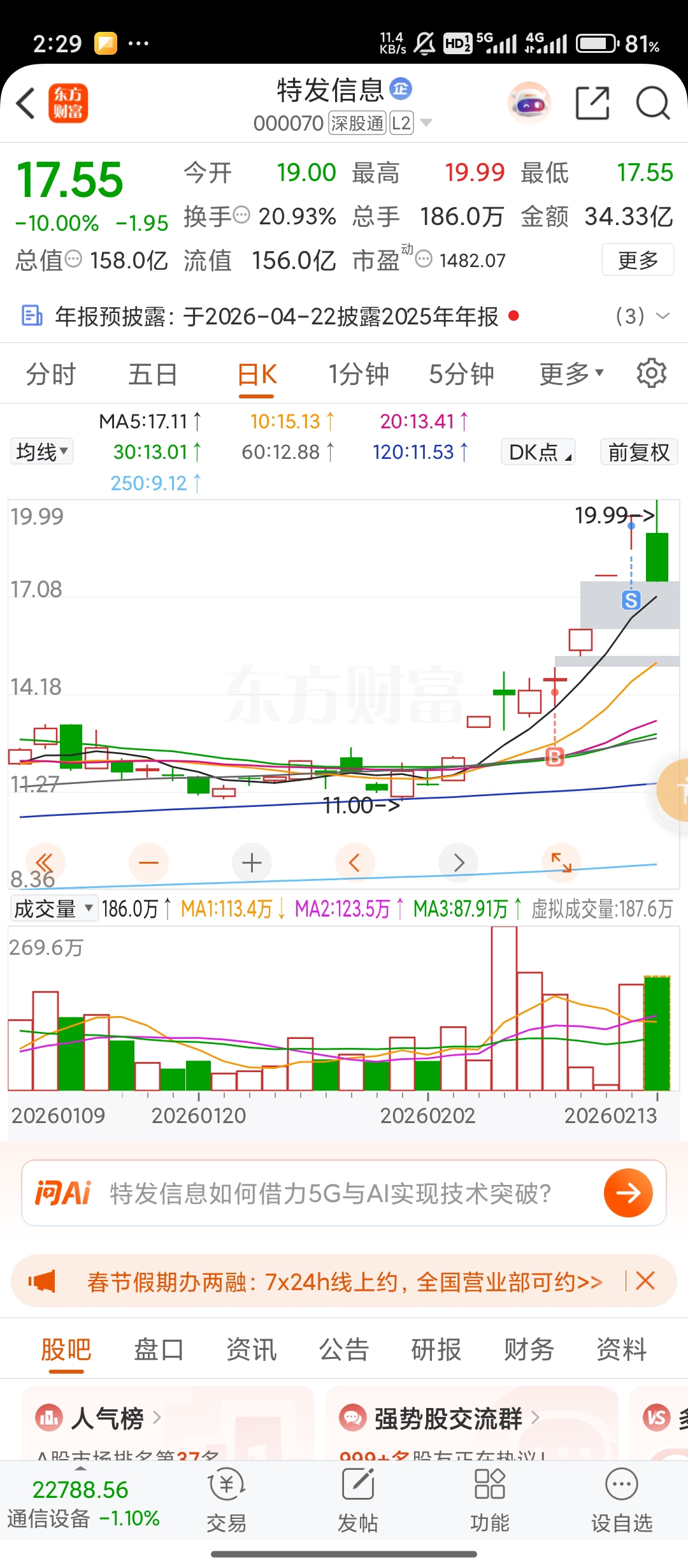$特发信息(SZ000070)$ 想想还是挺后怕呀。