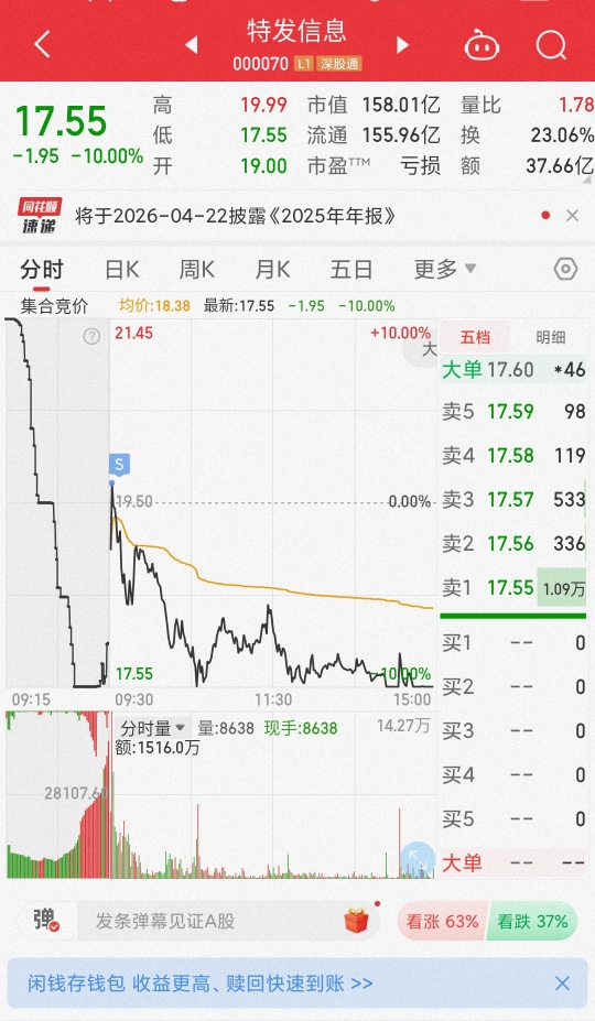 $特发信息(SZ000070)$ 我以为我卖飞了,结果