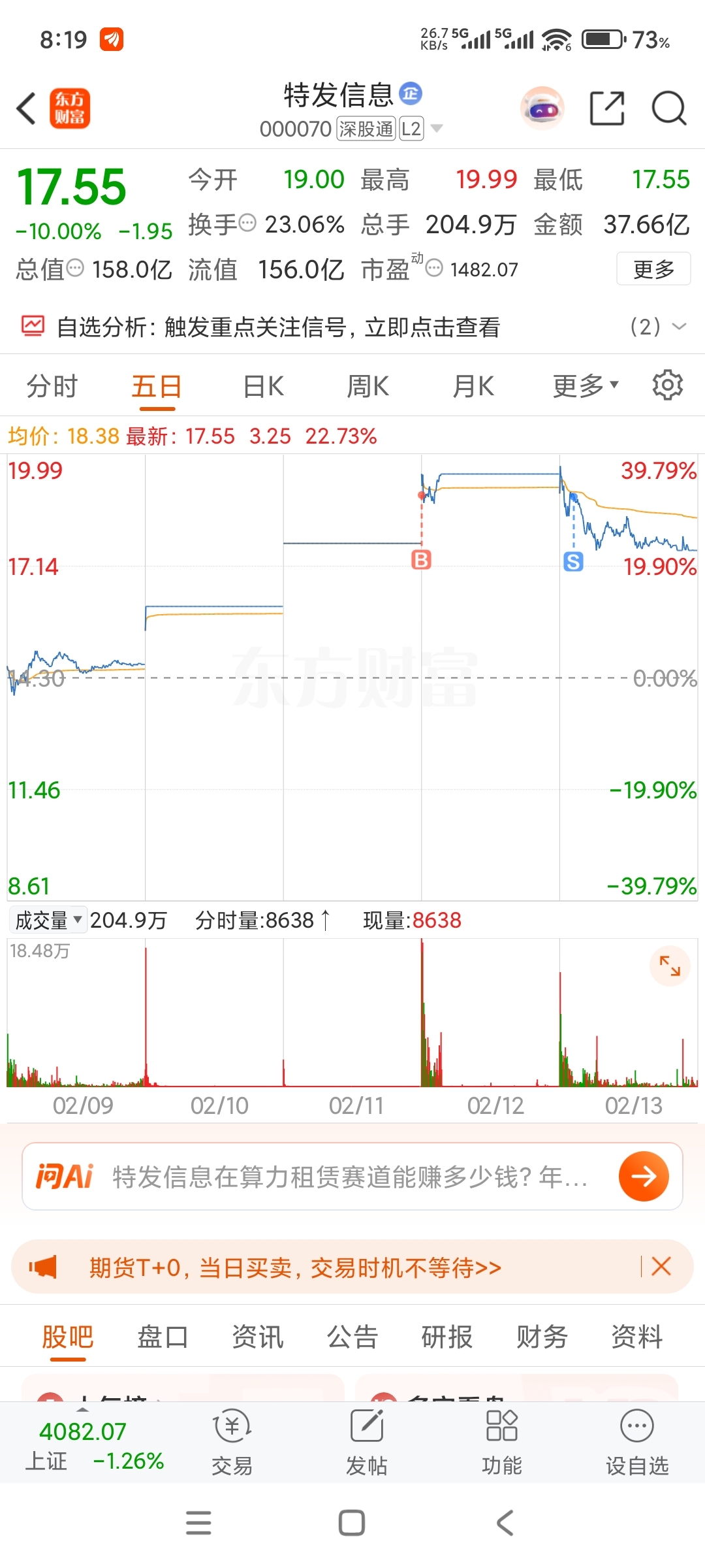 $特发信息(SZ000070)$ 过手财神爷,赔个手续费出来了