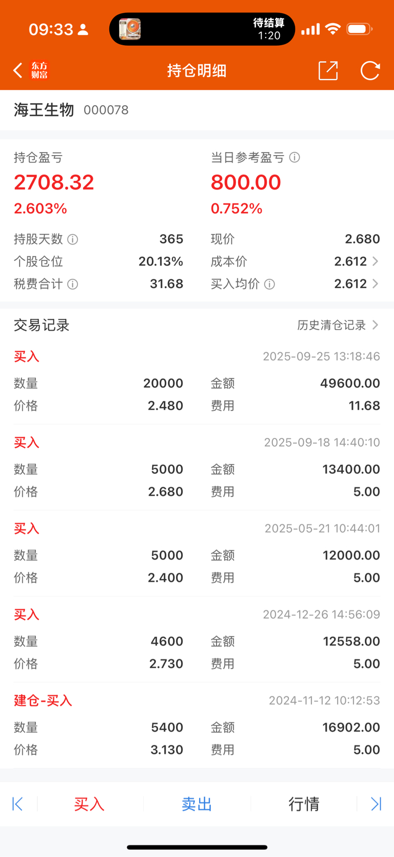 $海王生物(SZ000078)$ 看过你2015年的风姿卓越 去年见你成井底之蛙 于是买入 确实做长线来着,谁知道一拿365天 开始挣钱了