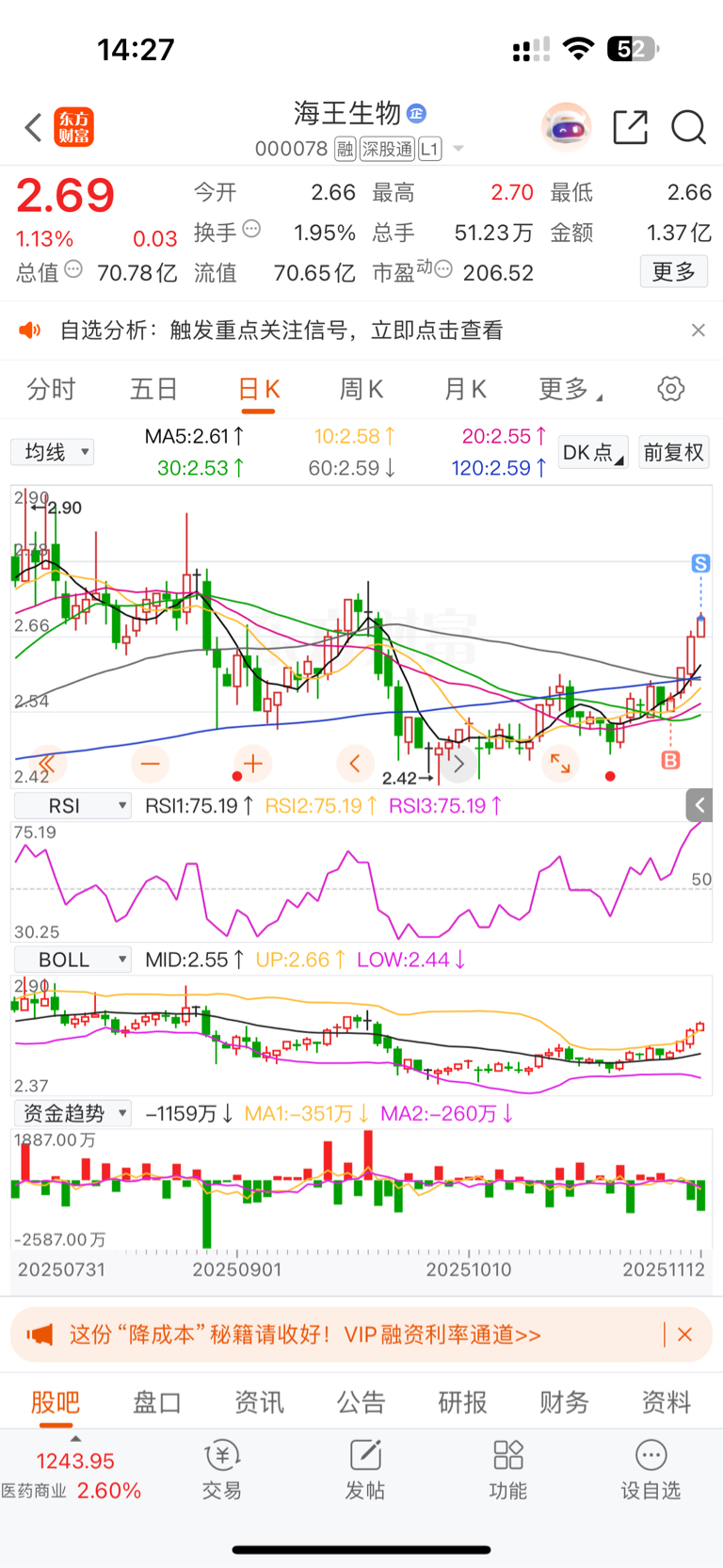 $海王生物(SZ000078)$ 落袋为安,留下的发财#炒股日记# #复盘记录# #强势机会#