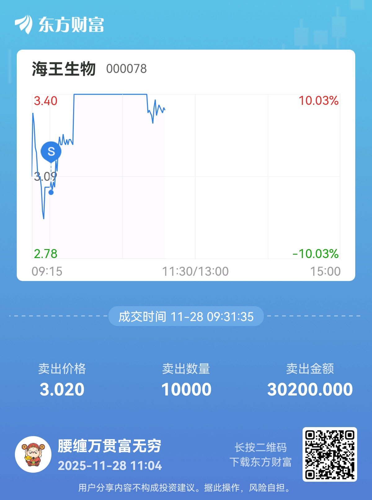 温馨提示: 1.根据《证券法》规定,禁止编造、传播虚假信息或者误导性信息,扰乱证券市场;2.用户在本社区发表的所有资料、言论等仅代表个人观点,与本网站立场无关,不对您构成任何投资建议。用户应基于自己的独立判断,自行决定证券投资并承担相应风险。《东方财富社区管理规定》