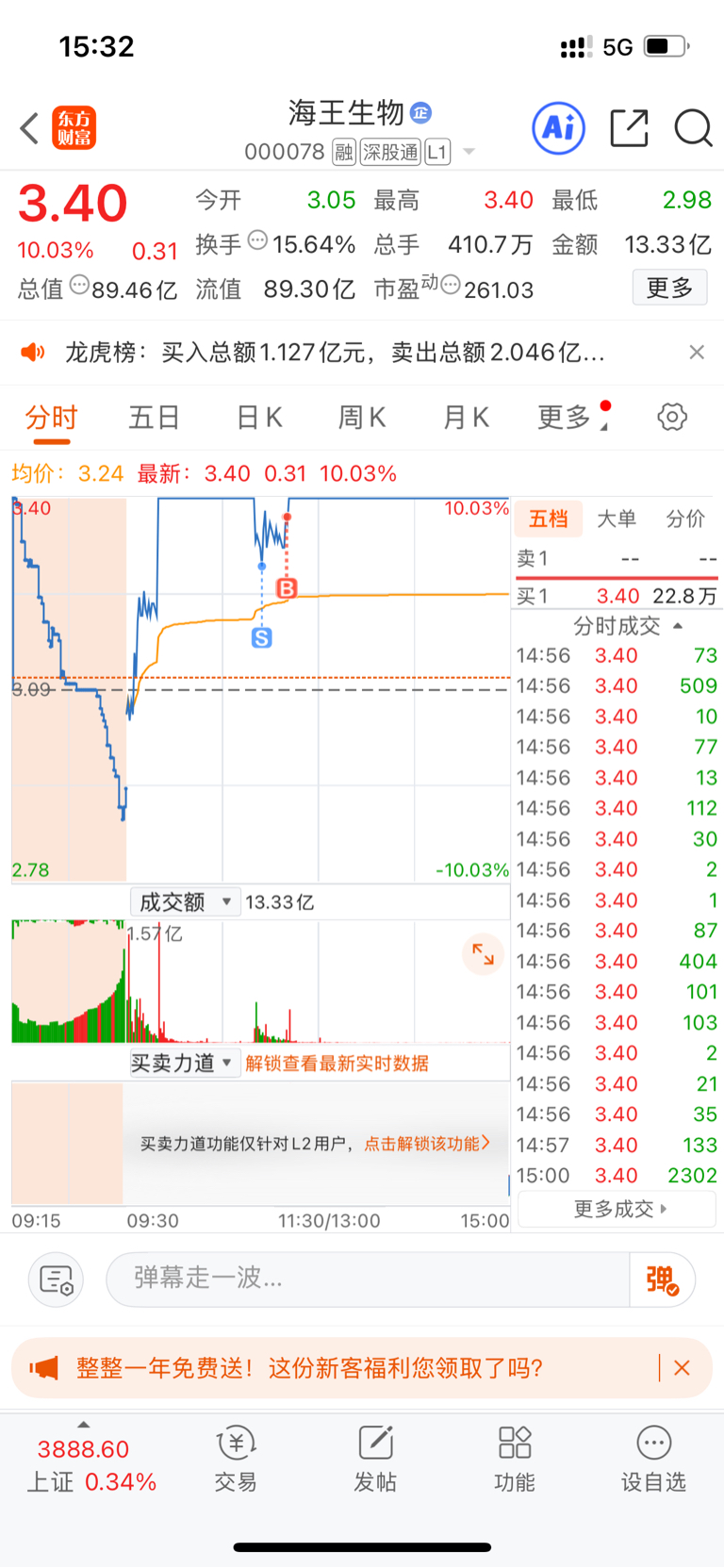 $海王生物(SZ000078)$ 幸好又接回来了,不然大腿拍肿