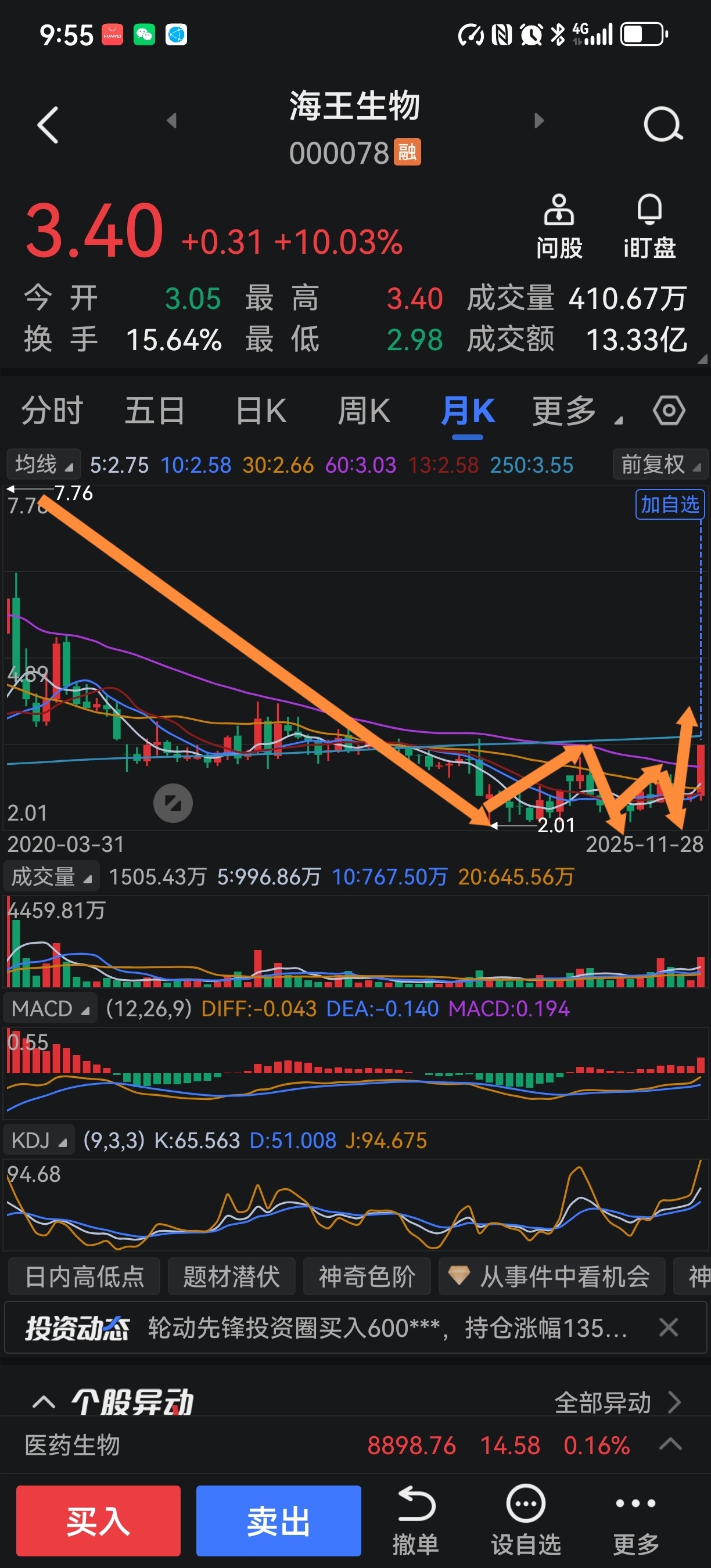 $海王生物(SZ000078)$ 天时、地利、人和。潜龙在渊,龙头也露,巨龙即将飞出水面,腾空飞升。带领大盘一举突破4034.08点。(入市有风险投资需谨慎)