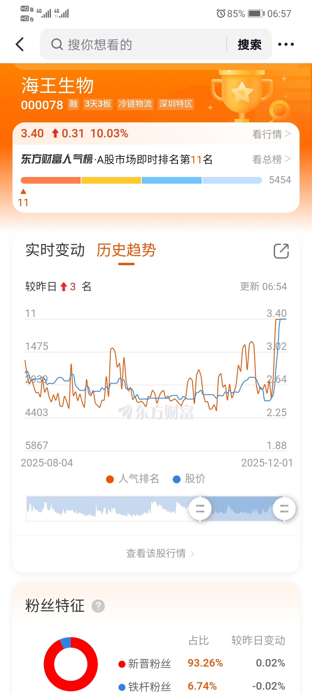 $海王生物(SZ000078)$ 妖王主力机构不但控盘牛逼,人气榜也同样一流,26日上第一板人气排名30左右幅动,27日第二板人气榜排名26左右幅动,28日第三板人气榜排名16左右幅动,这两天排名↑一直靠前,现在排第11名,主力机构周一竞价必然抢筹大战不排除顶一字,早盘收盘喜提4连板人气榜进入前10(一切在资本运作计划中)6年只会磨一剑