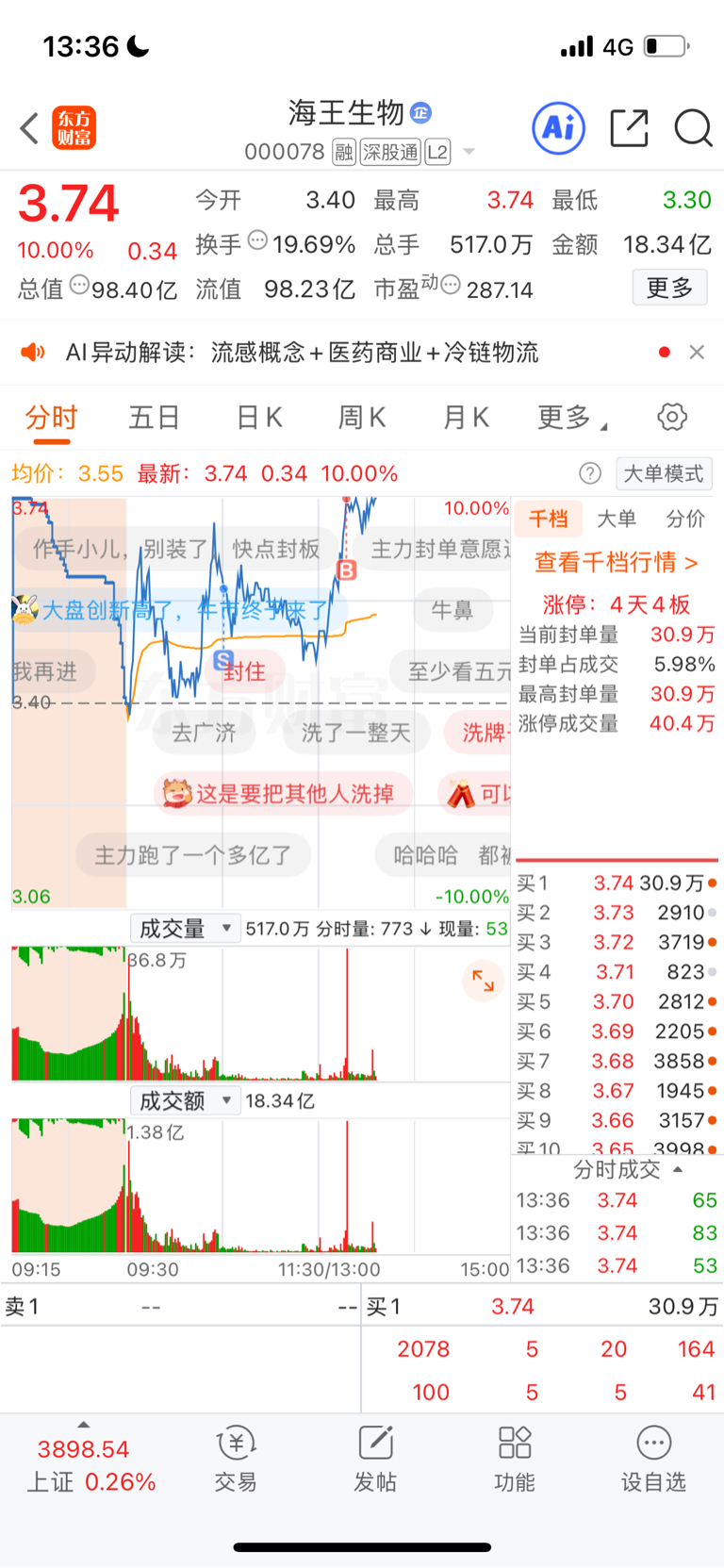 $海王生物(SZ000078)$ 难受啊少赚四个点