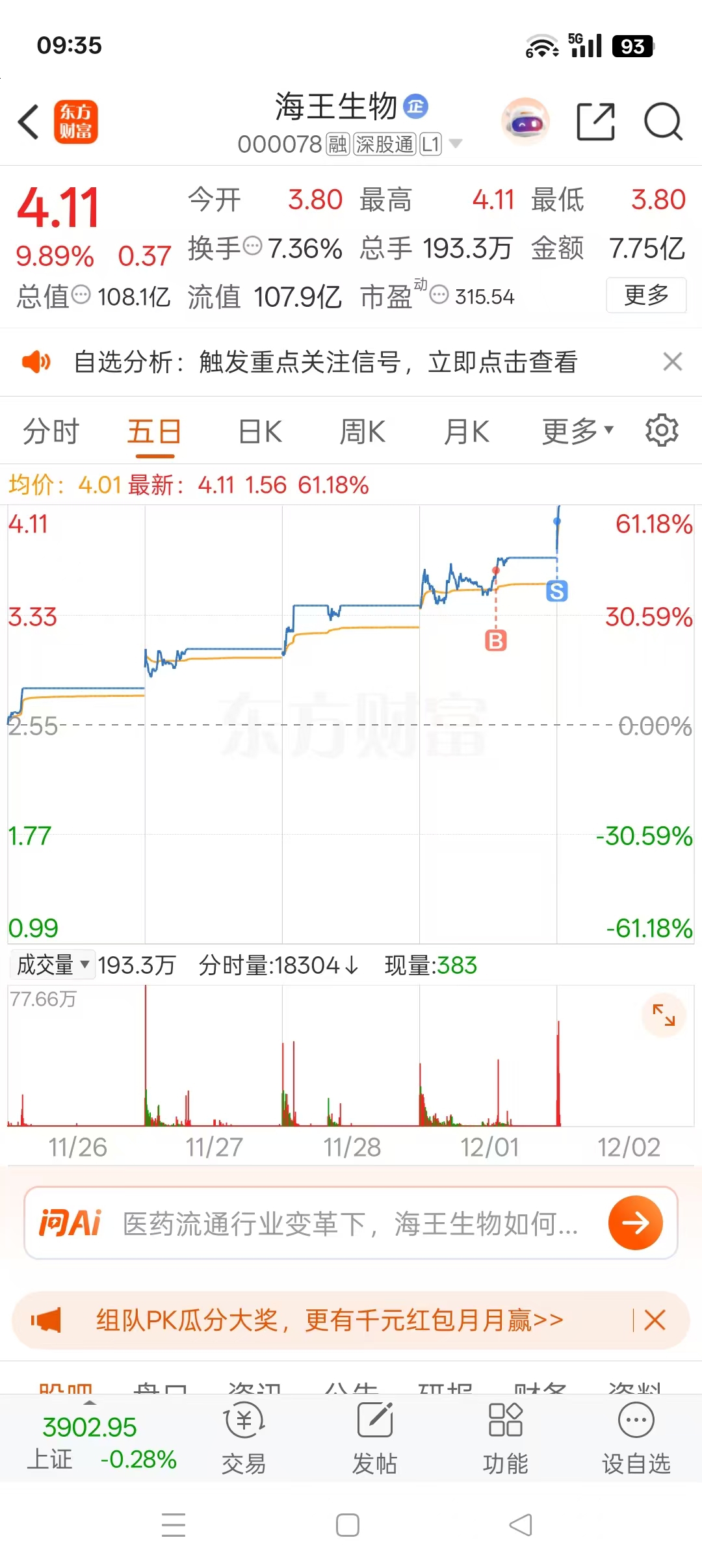 $海王生物(SZ000078)$ 拿了个涨停卖飞了,看来这真是跨年妖
