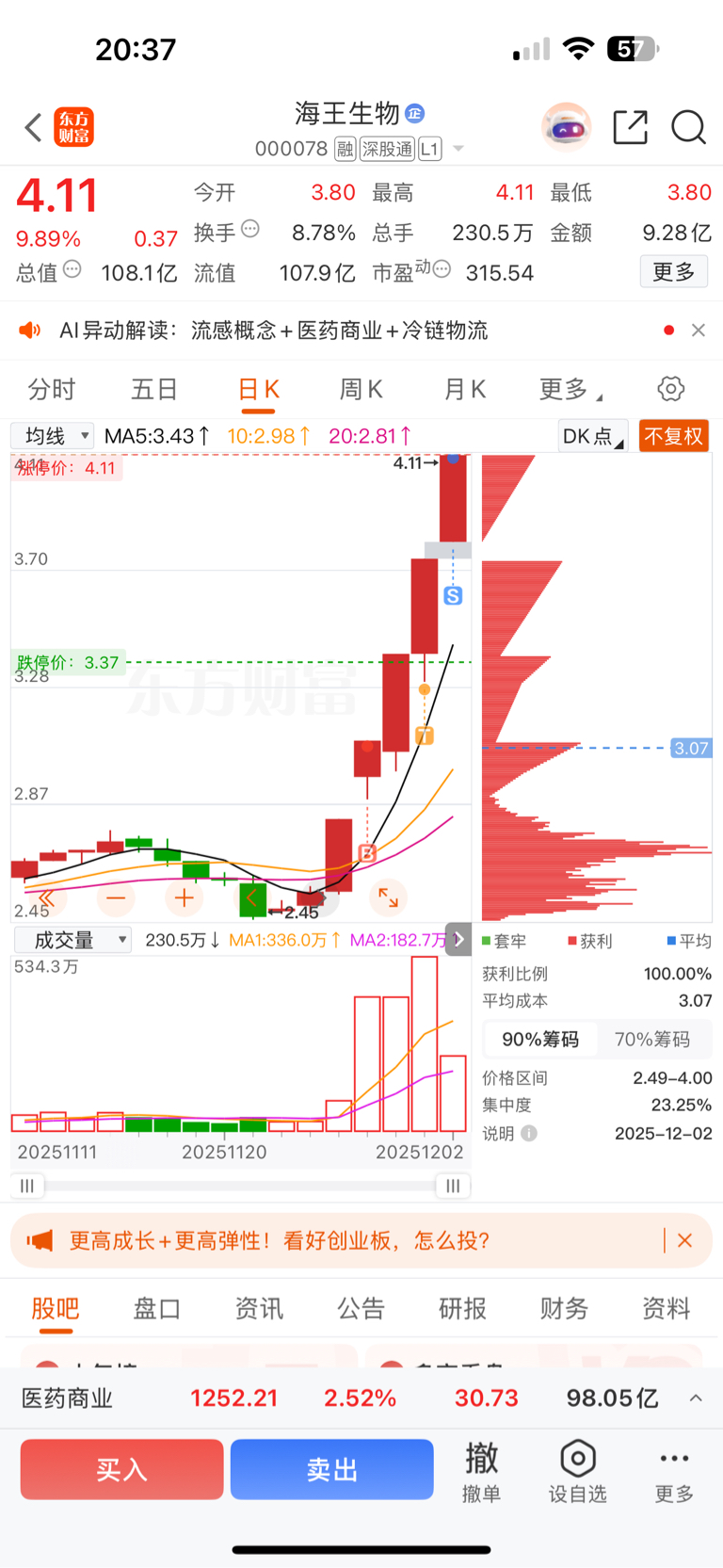 $海王生物(SZ000078)$ 不能太贪了。能吃饭36个点已经很幸福了