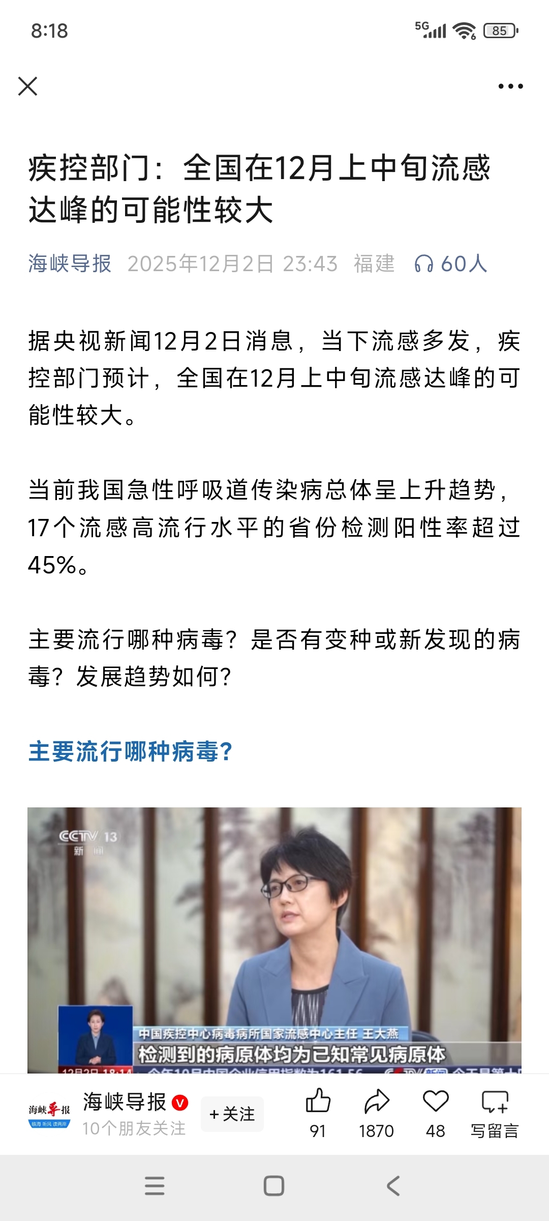 $海王生物(SZ000078)$ 使命还在继续,流感更加严重了
