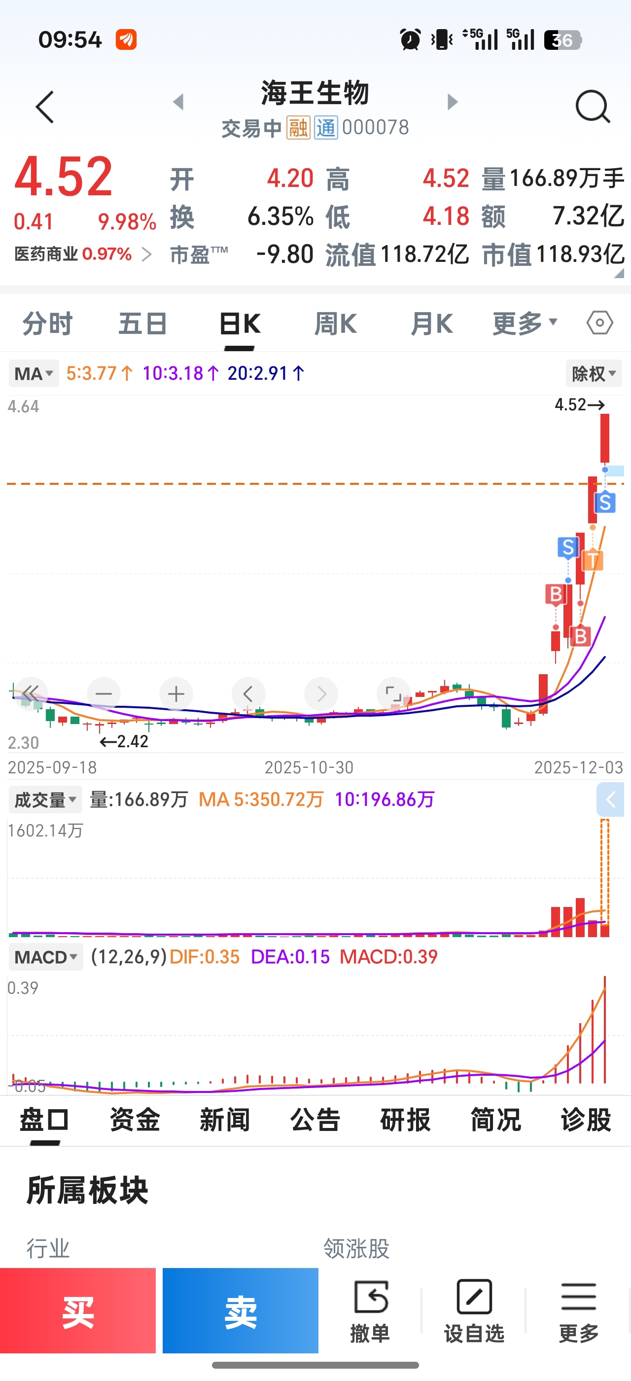 $海王生物(SZ000078)$ 我承认卖飞了