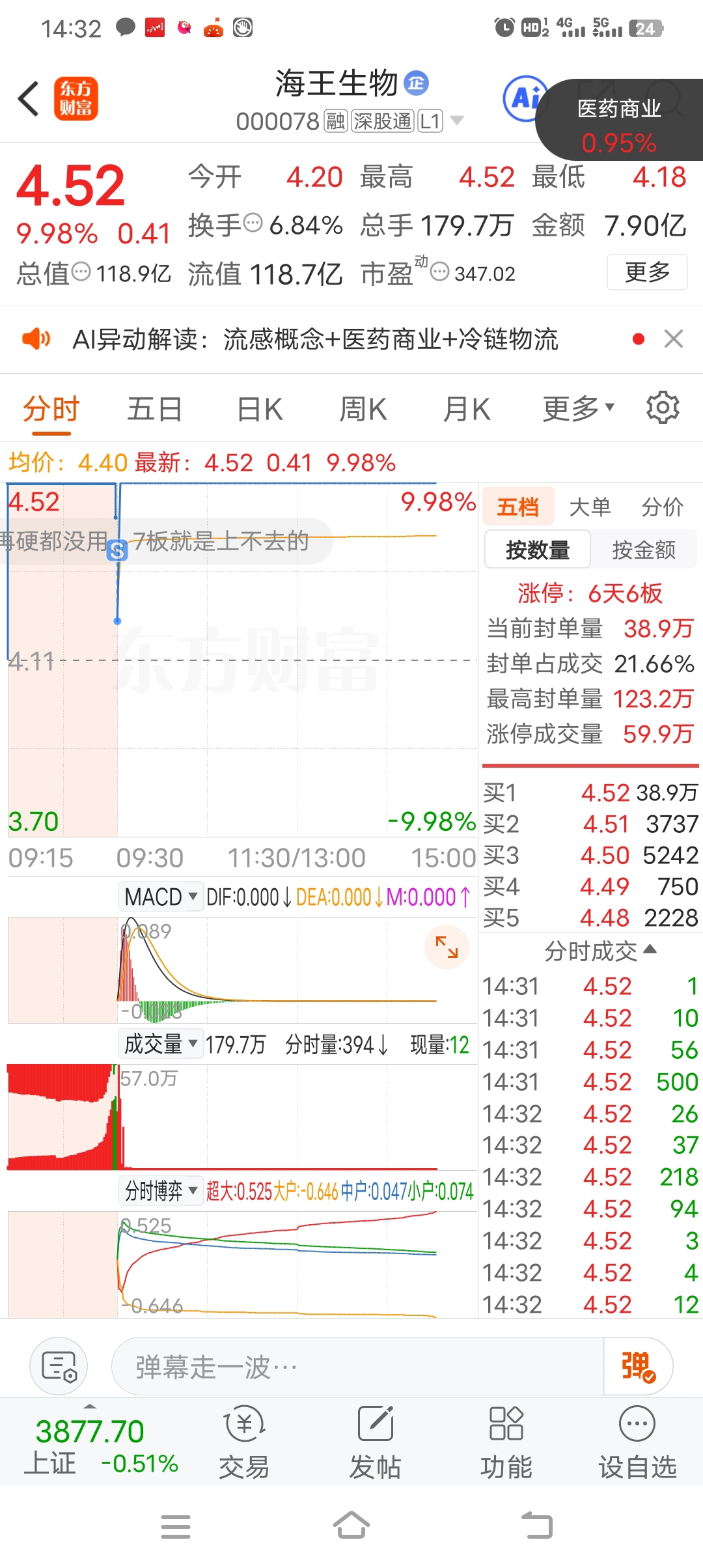 $海王生物(SZ000078)$ 竞价谁砸的?我就是个sb