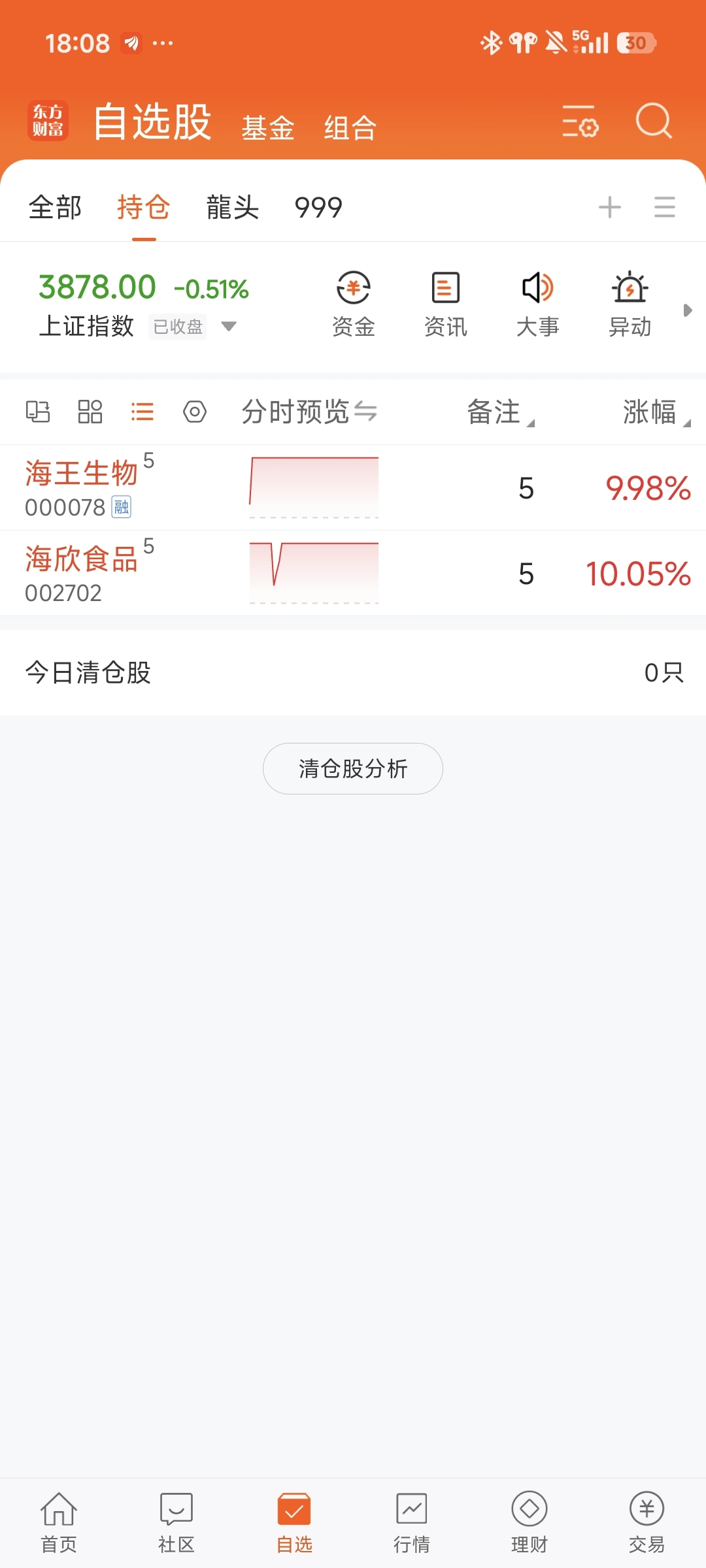$海王生物(SZ000078)$ $海欣食品(SZ002702)$ 我想涨粉。趁着牛市我想多涨粉。每日有复盘,平时也可以帮忙看票。主流的看得懂的尽量回复,杂毛的不会看的也会说。跟2-3个周期,短线可以入门。月初三连阴的快过来关注。