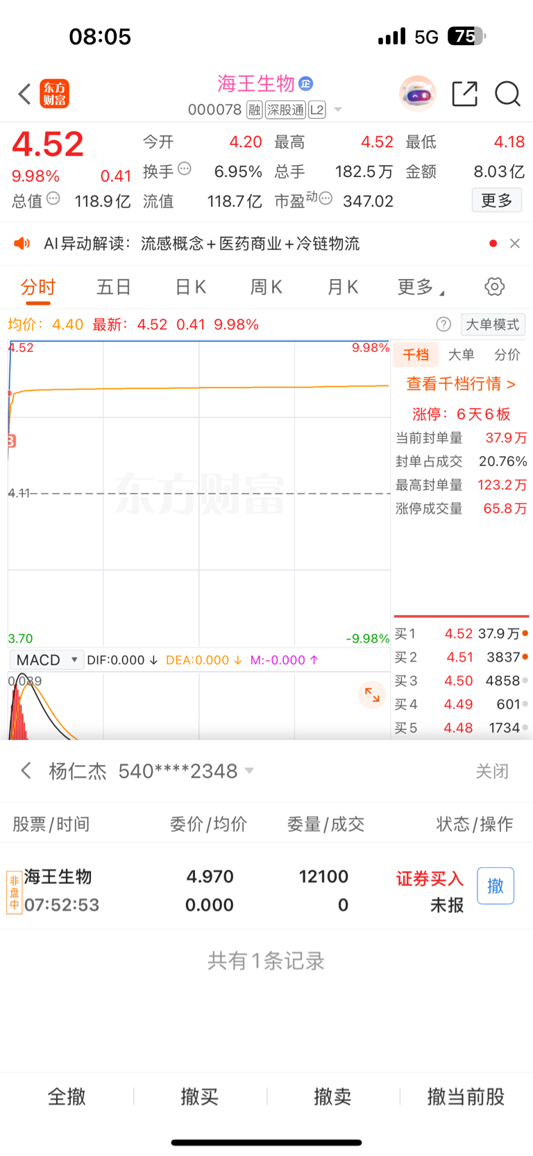 $海王生物(SZ000078)$ 加仓,誓于海神共存亡