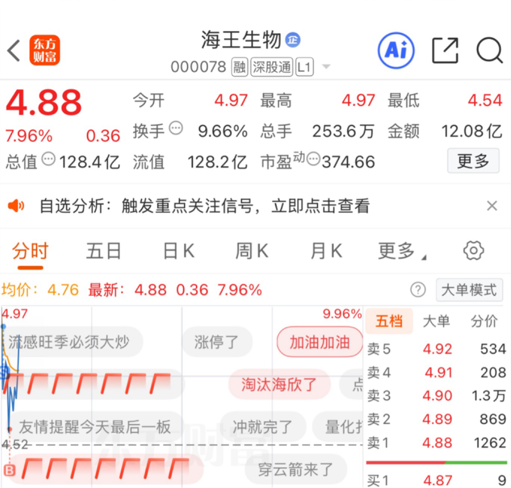 $海王生物(SZ000078)$ $平潭发展(SZ000592)$ $海欣食品(SZ002702)$ 海王你就是最靓的王等着你的十连板