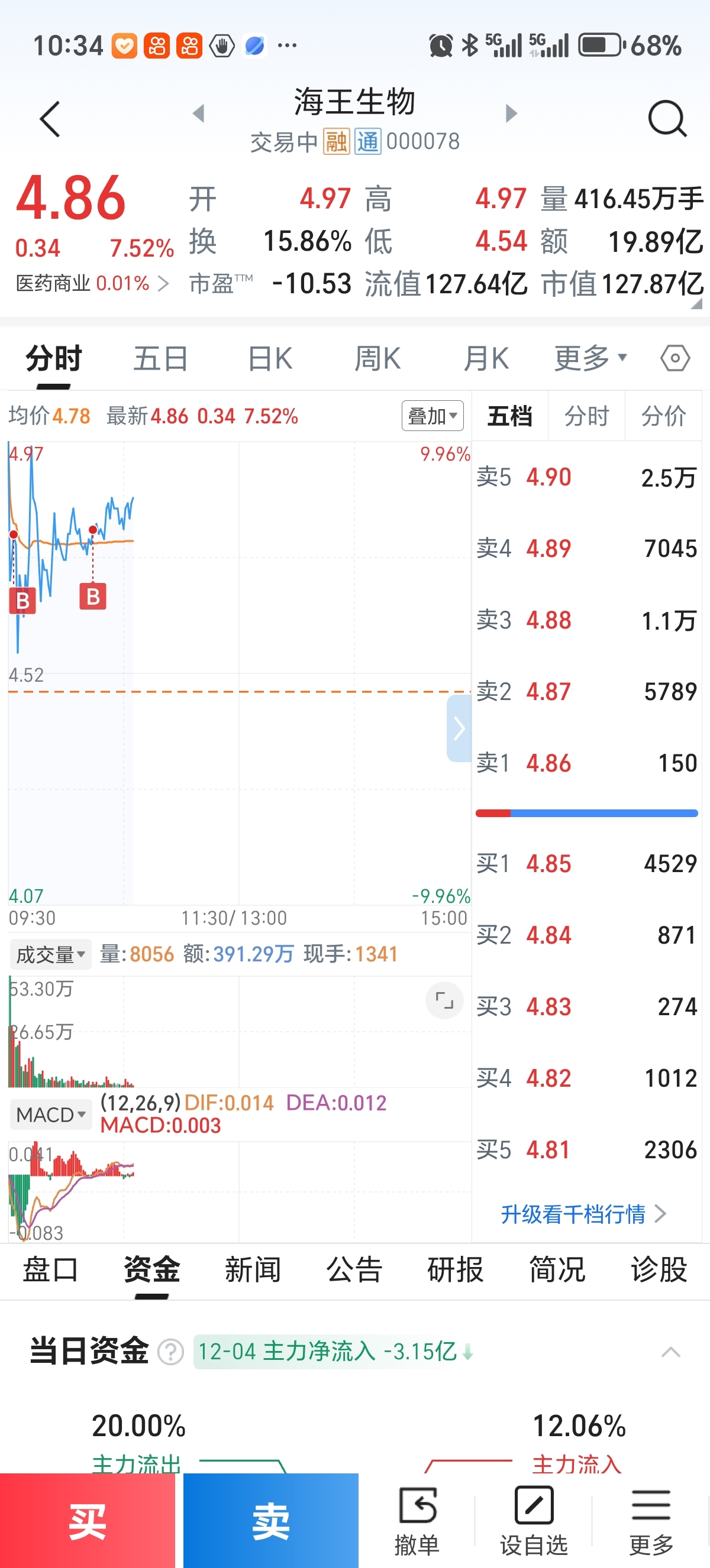 $海王生物(SZ000078)$ 慢拉就不是出货了,放心补仓。本人已补两次,