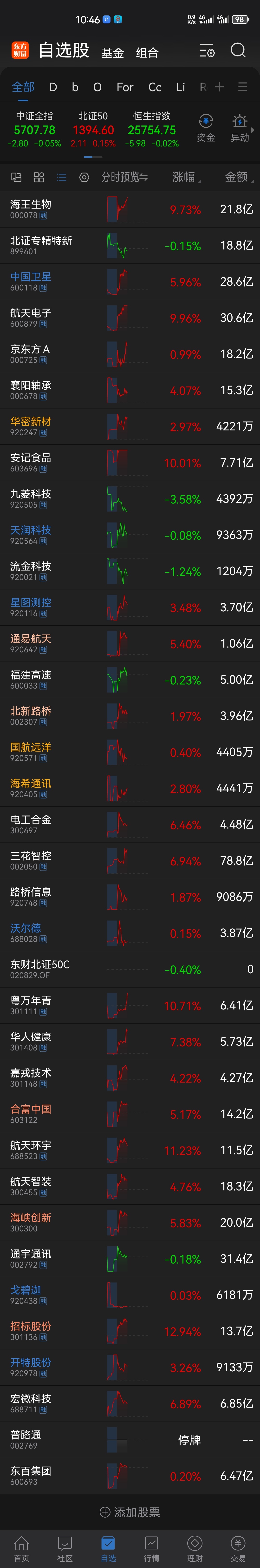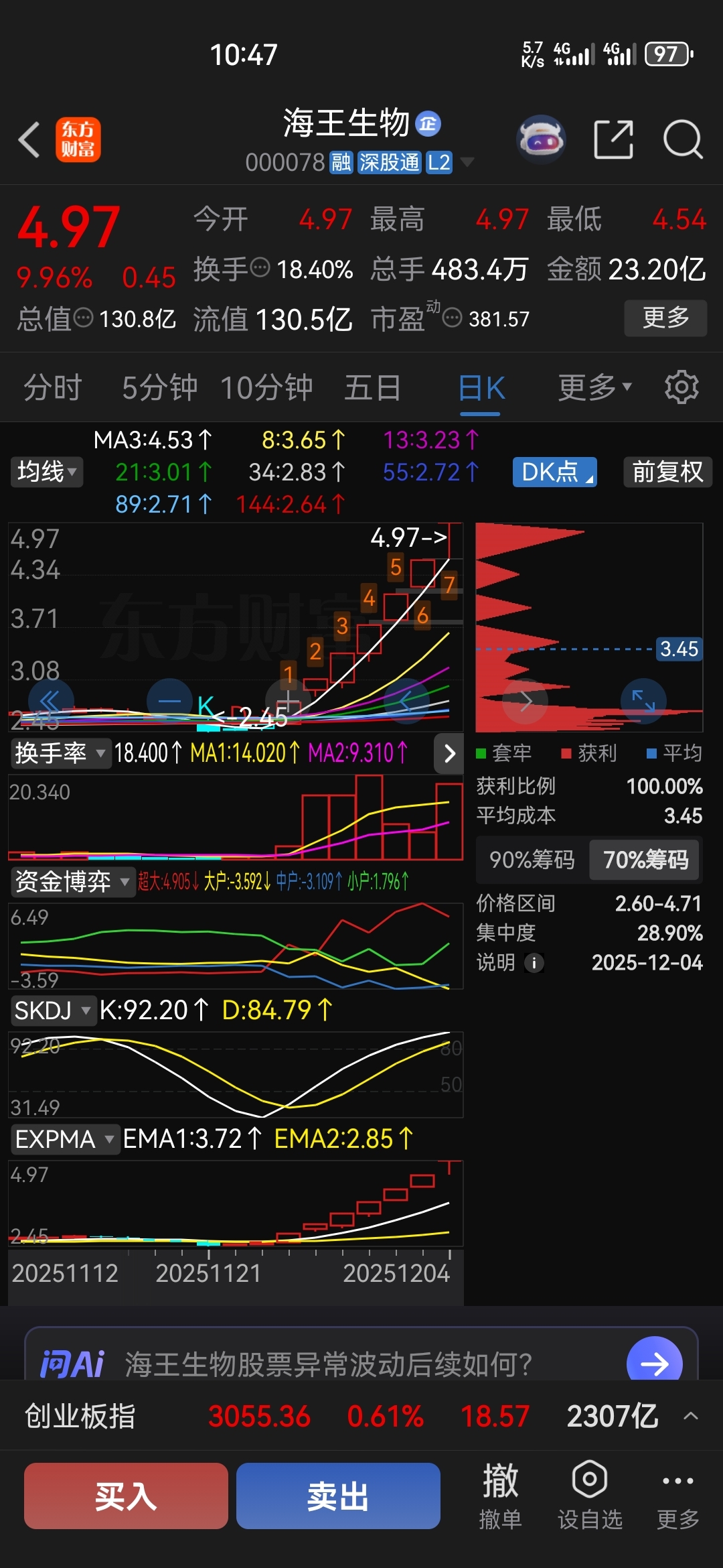 [上证指数] $深证成指(SZ399001)$ 海王翻倍了 $北证50(SZ899050)$ 机器人材料 $华密新材(SZ920247)$ 东方财富及鸡精,油脂来不来,大家来不来?