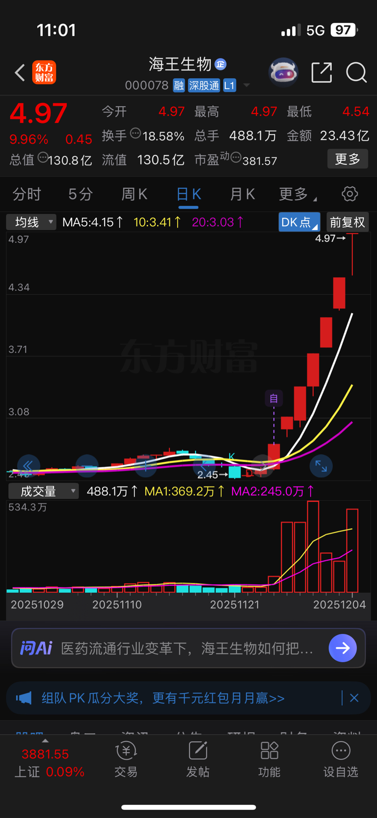 $海王生物(SZ000078)$ 我只配看看