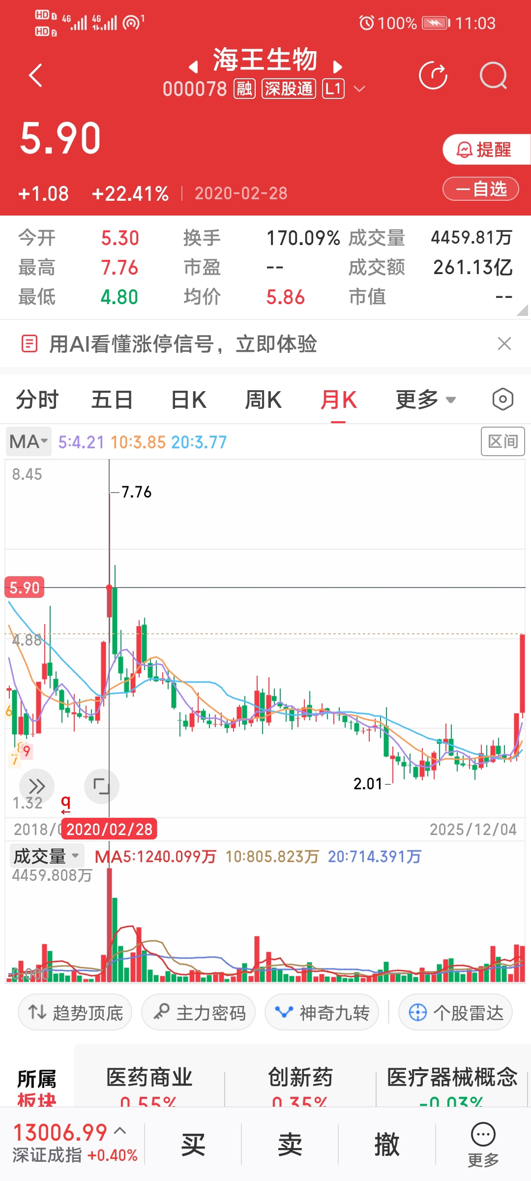 《空狗踏空8步曲》原创来了(首板后研究预测海王成妖)首先庆祝海王成功登上两市总龙
