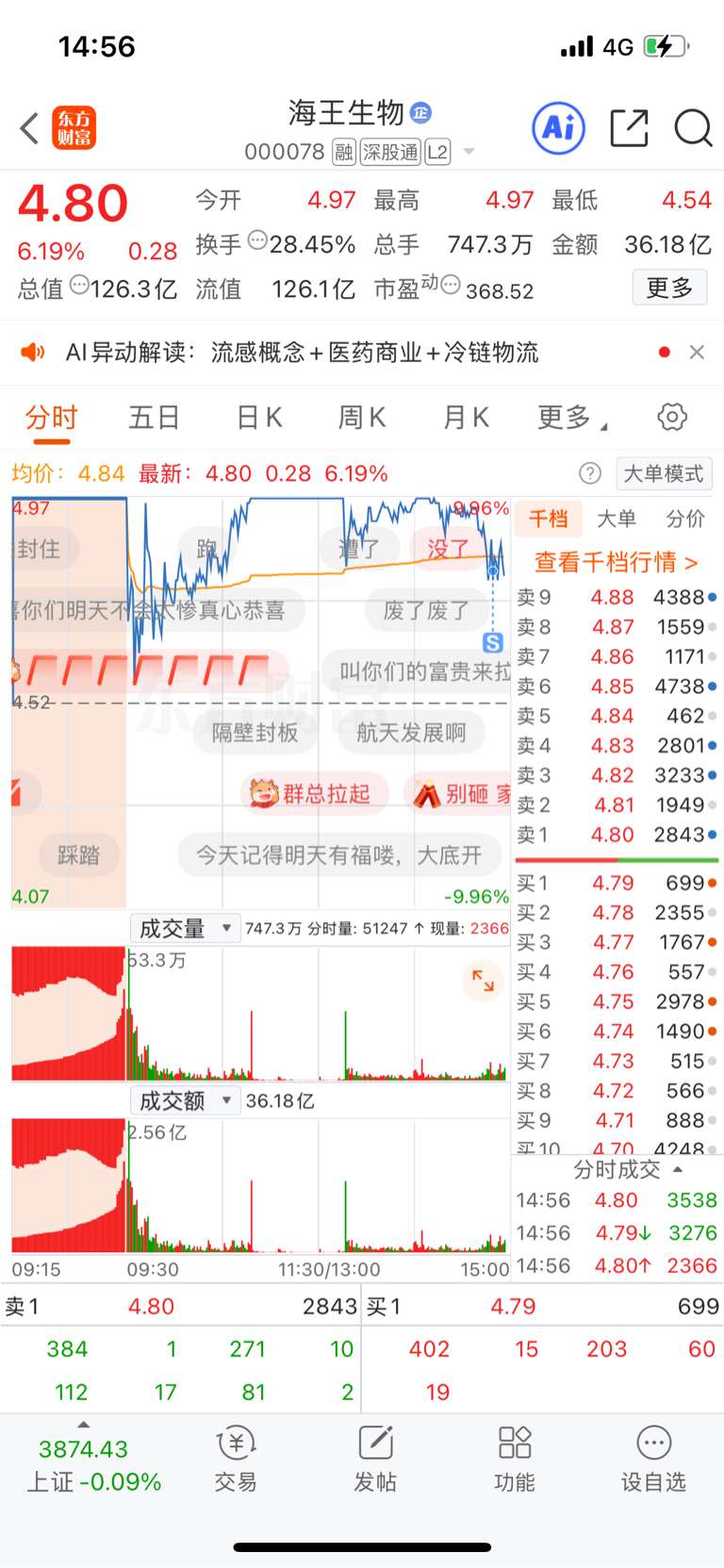 $海王生物(SZ000078)$ 40个点,格局到尾盘才走,感谢海王