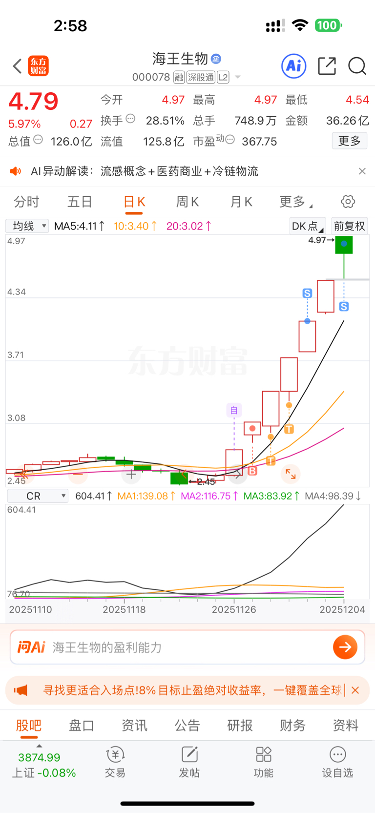$海王生物(SZ000078)$ 走完了,今晚看一下榜单 挣了50%