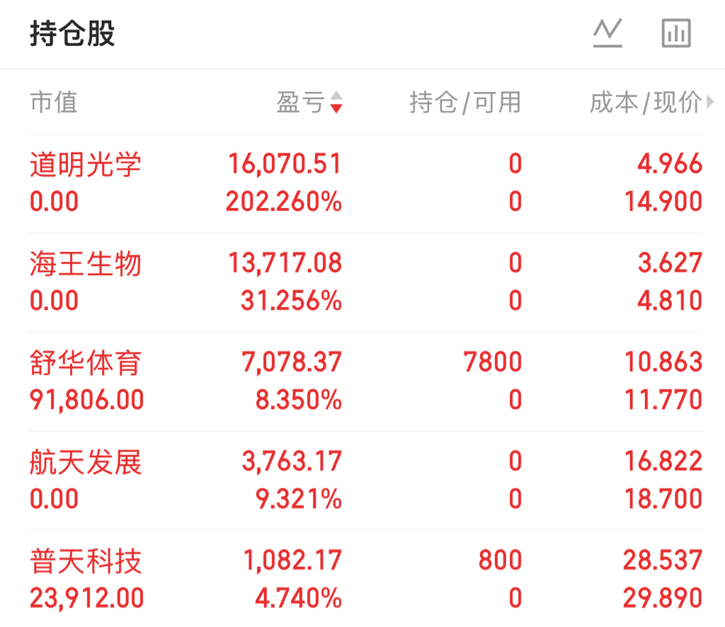 $海王生物(SZ000078)$ 落袋为安了,留下的兄弟发财$道明光学(SZ002632)$ $航天发展(SZ000547)$