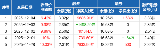 海王生物融资融券信息显示,2025年12月4日融资净买入9686.91万元;融资余额3.32亿元,创近一年新高,较前一日增加41.24%,增幅两市第11。