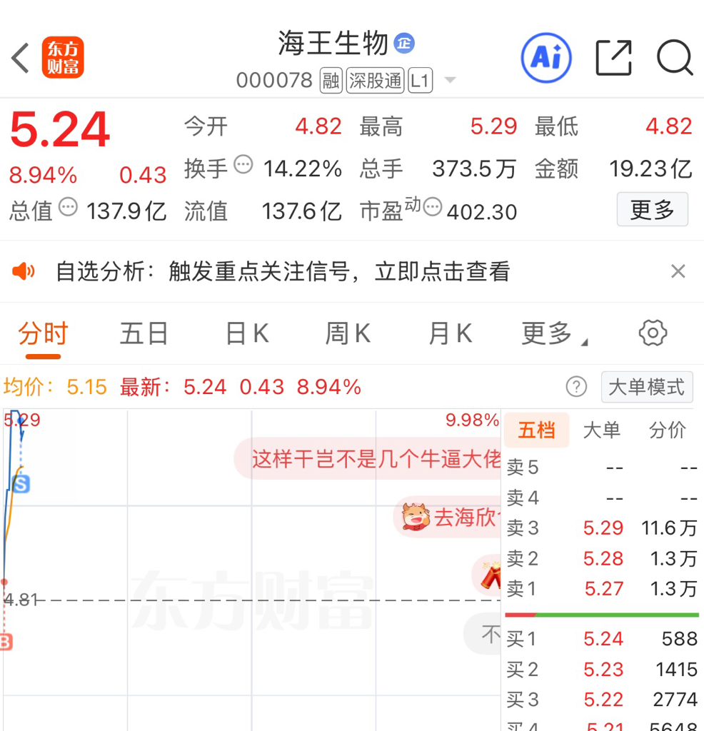 $海王生物(SZ000078)$ $海欣食品(SZ002702)$ $N摩尔-U(SH688795)$ 海王对我真好天天T也很爽,继续做你的龙头