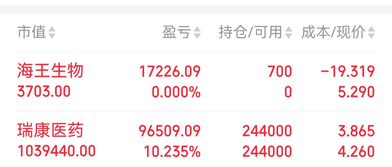 $海王生物(SZ000078)$ $瑞康医药(SZ002589)$ 12月5日0点:留强去弱。分仓买靠前排的,低吸+打回封。1.单点全仓瑞康医药,恭喜吃肉。2.一进2,龙洲股份(pk骏亚科技)。3.海王生物,安记食品(海欣食品)盯板吃肉。收工。