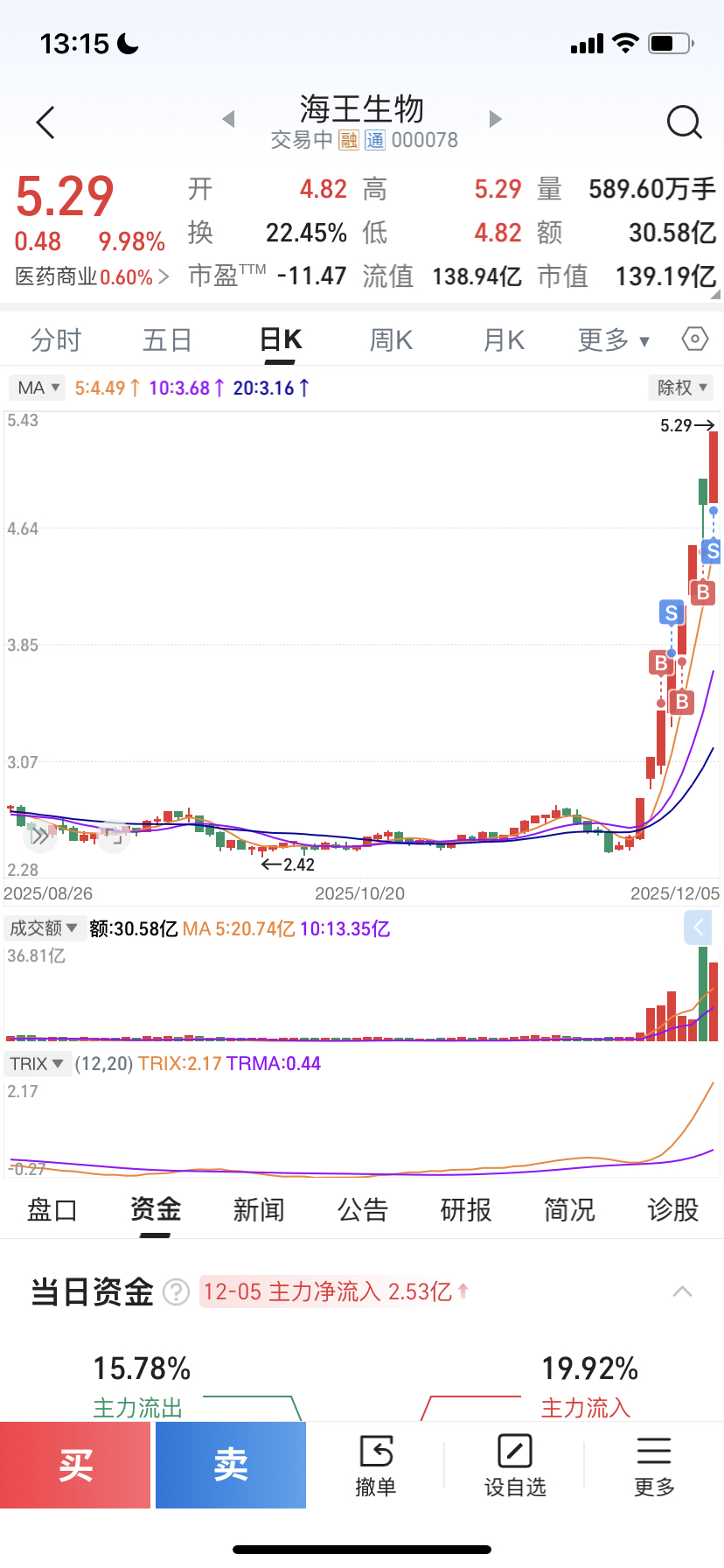 $海王生物(SZ000078)$ 今天先出货了,严重异动了,最近严重异动的票第二天都不行,看下周行情再接回来