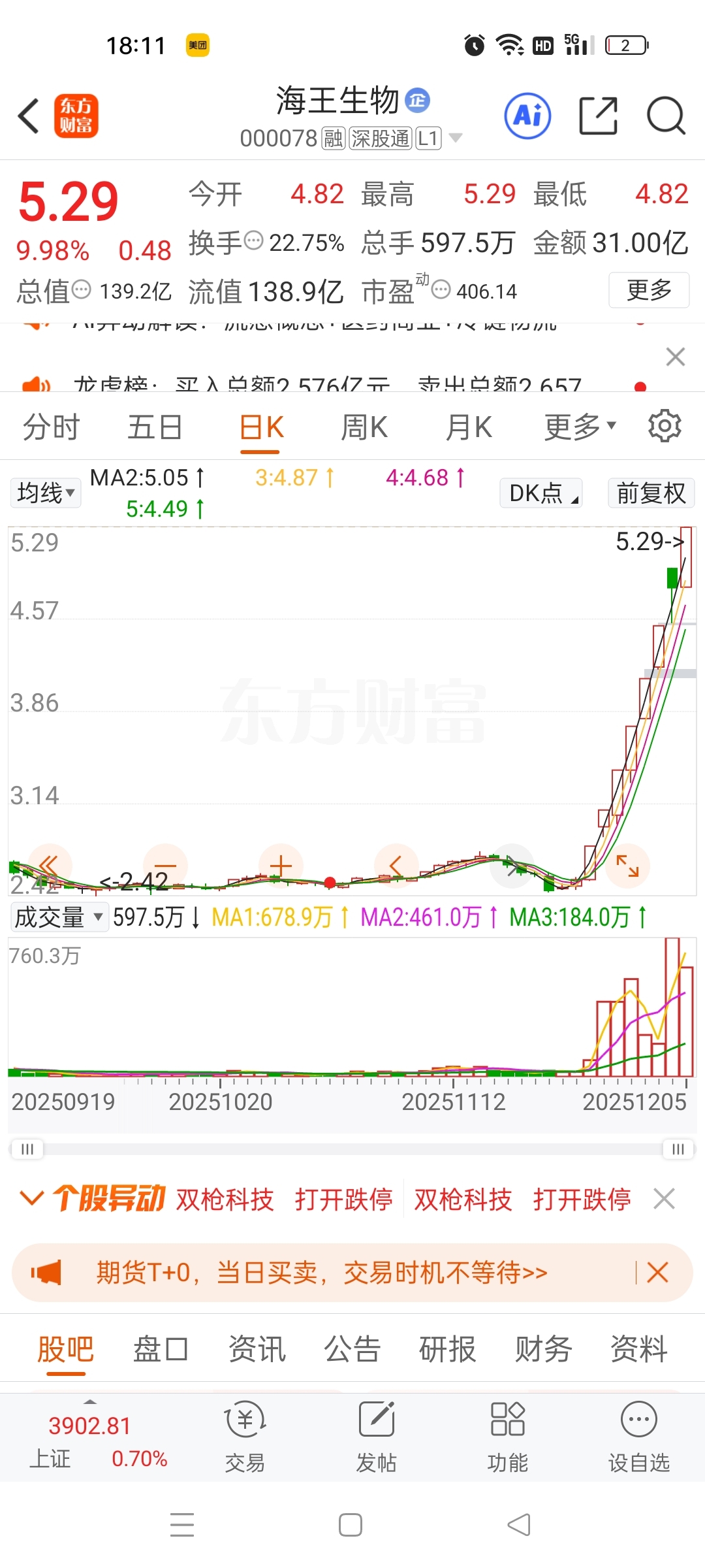$海王生物(SZ000078)$ 为什么我喜欢尾盘拿二次回封主力放量阴线,这个就是尾盘拿成功的例子,收益回高很多,第二天低开也会冲高拉红有仓位做T也是可以赚很多,我随便一发都是好几个,掌握卖点亏钱很少的