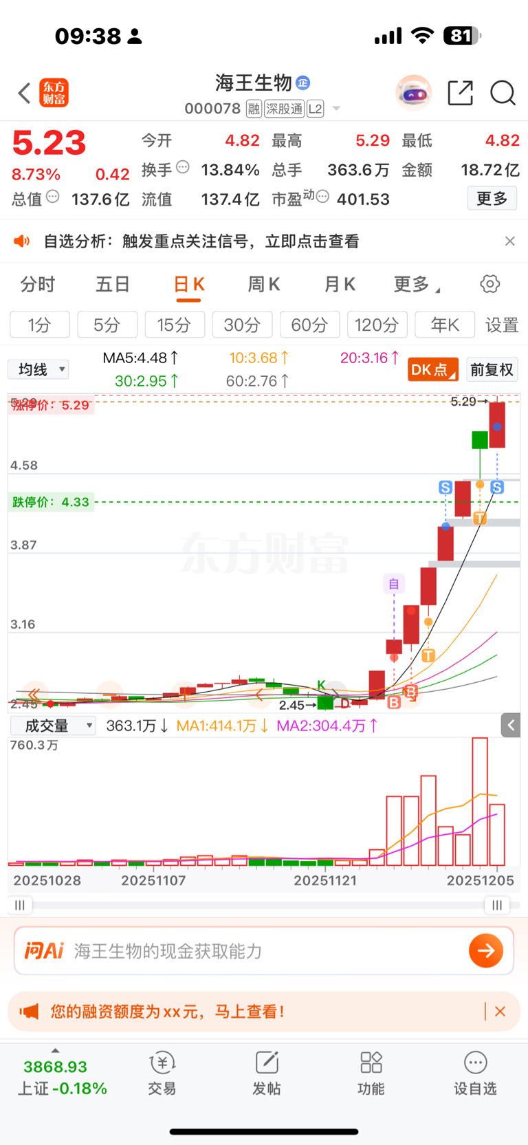 $海王生物(SZ000078)$ 认知不够 下周再战