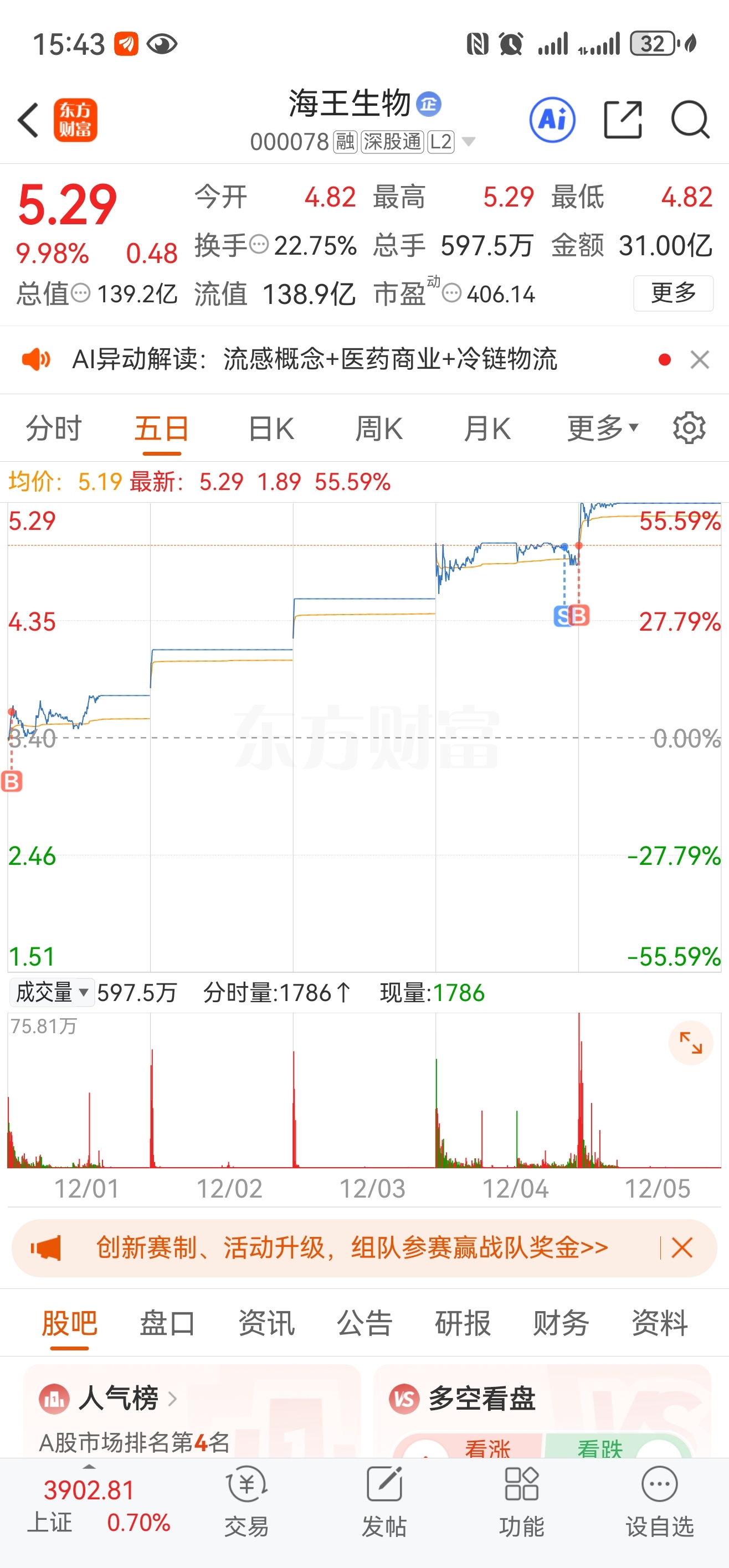 $海王生物(SZ000078)$ 加油加油