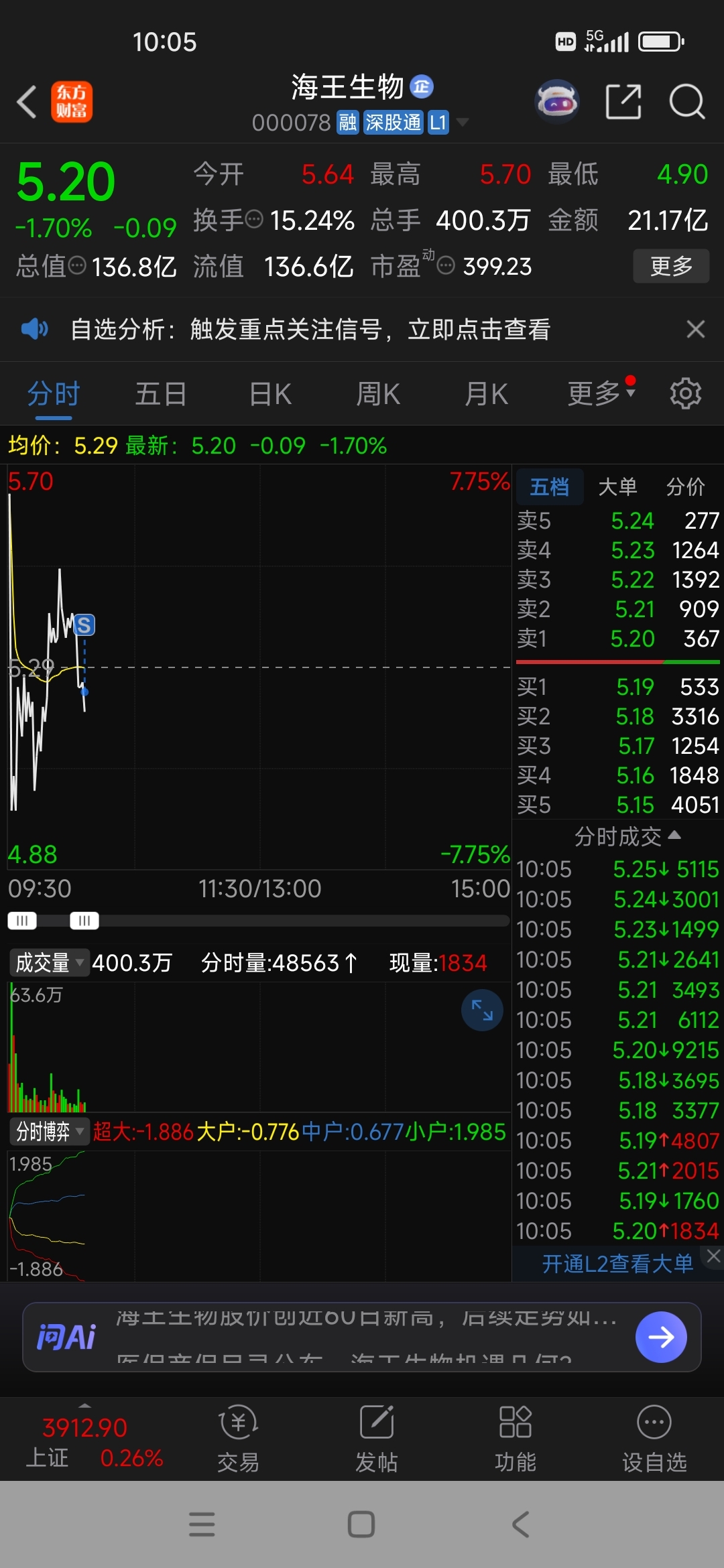 $海王生物(SZ000078)$ 走了,今天接盘侠太多了,基本见顶了