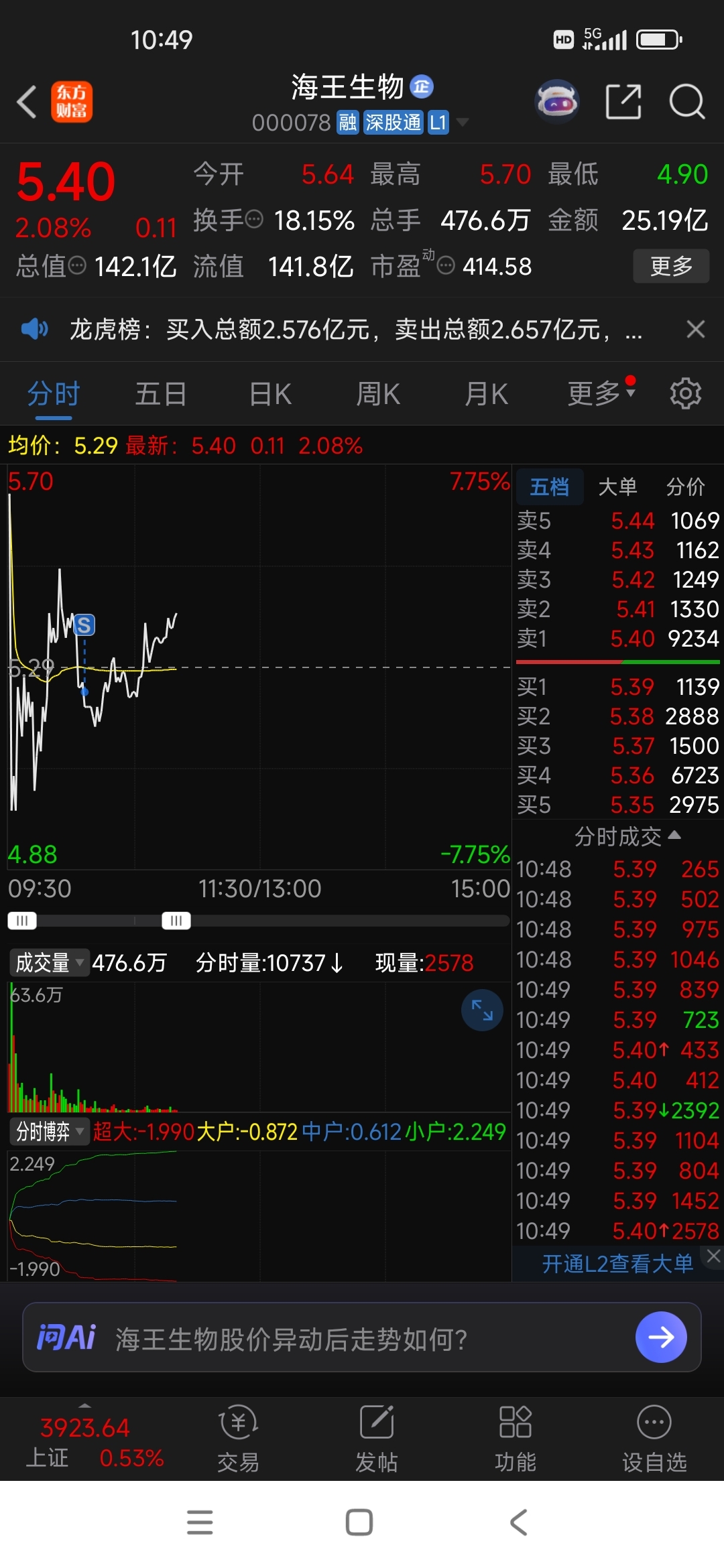 $海王生物(SZ000078)$ 求你了别上去,我刚清仓了