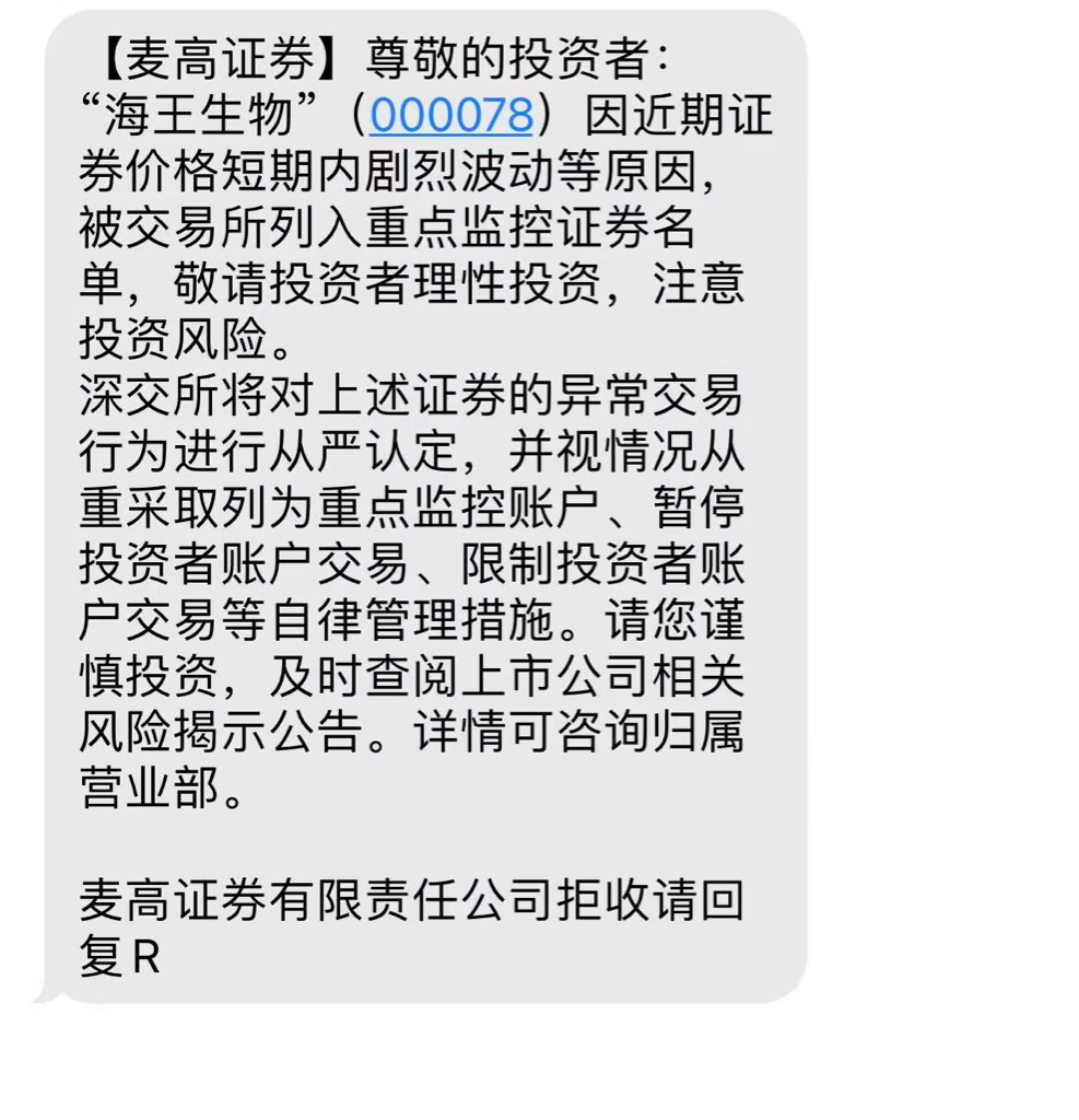 $海王生物(SZ000078)$ 盘中都发短信了还不跑,等着下午埋地板吧你们