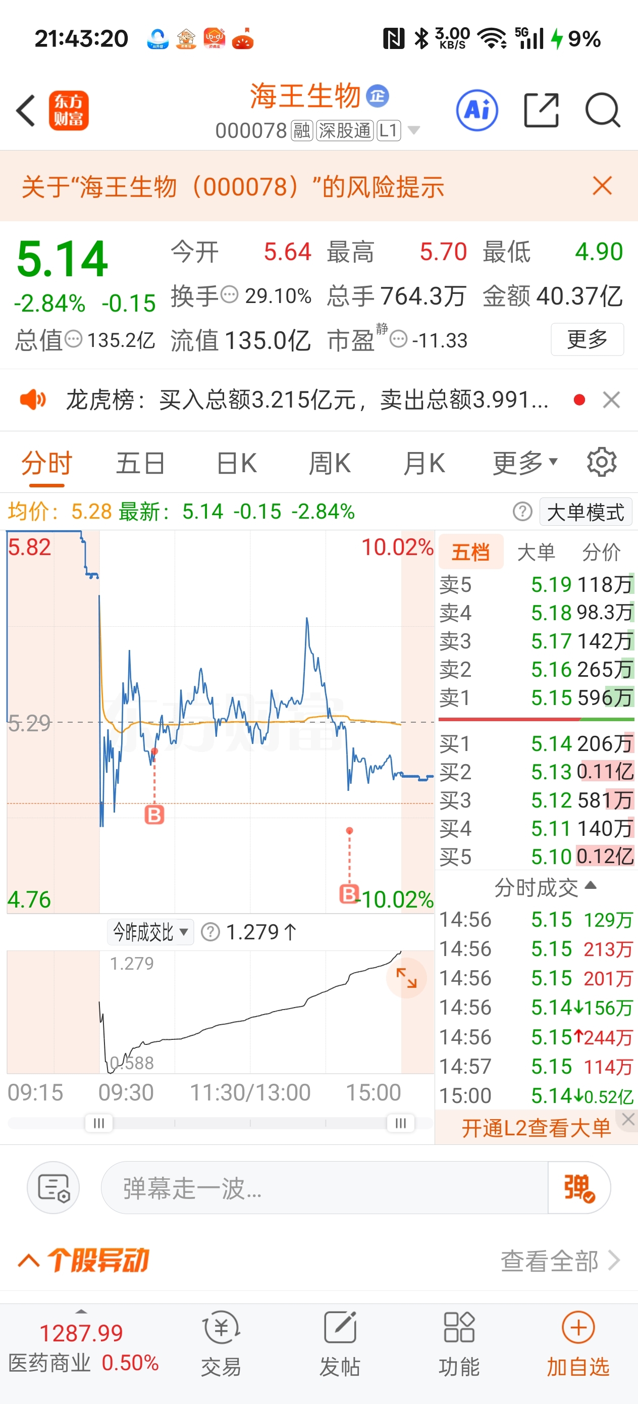 $海王生物(SZ000078)$ 第一时间跑路吧家人们明天