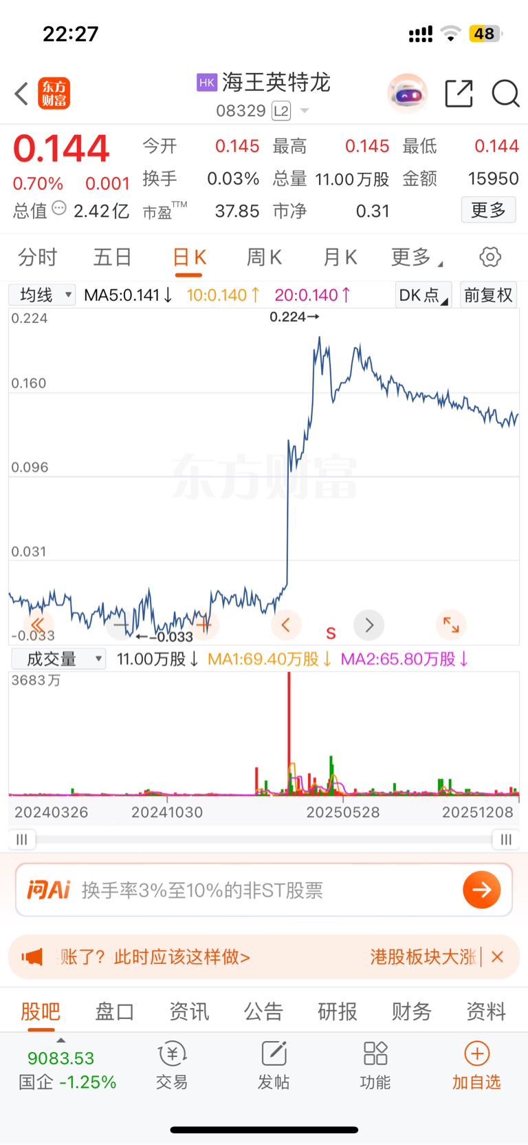 $海王生物(SZ000078)$ 海王还有一个小港股?