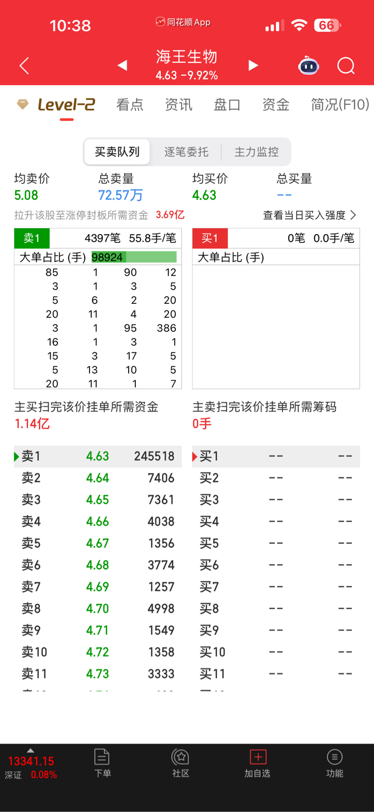 $海王生物(SZ000078)$ 一个大单都没有 家人们夺门奔走