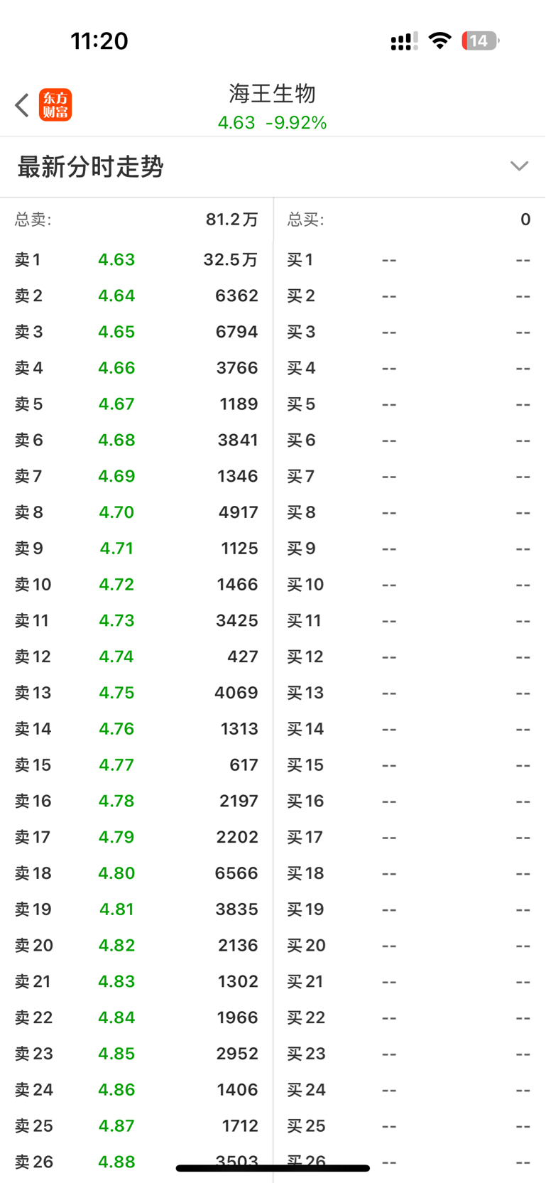 $海王生物(SZ000078)$ 耶稣都留不住我说的早上告诉你跌停都不信。