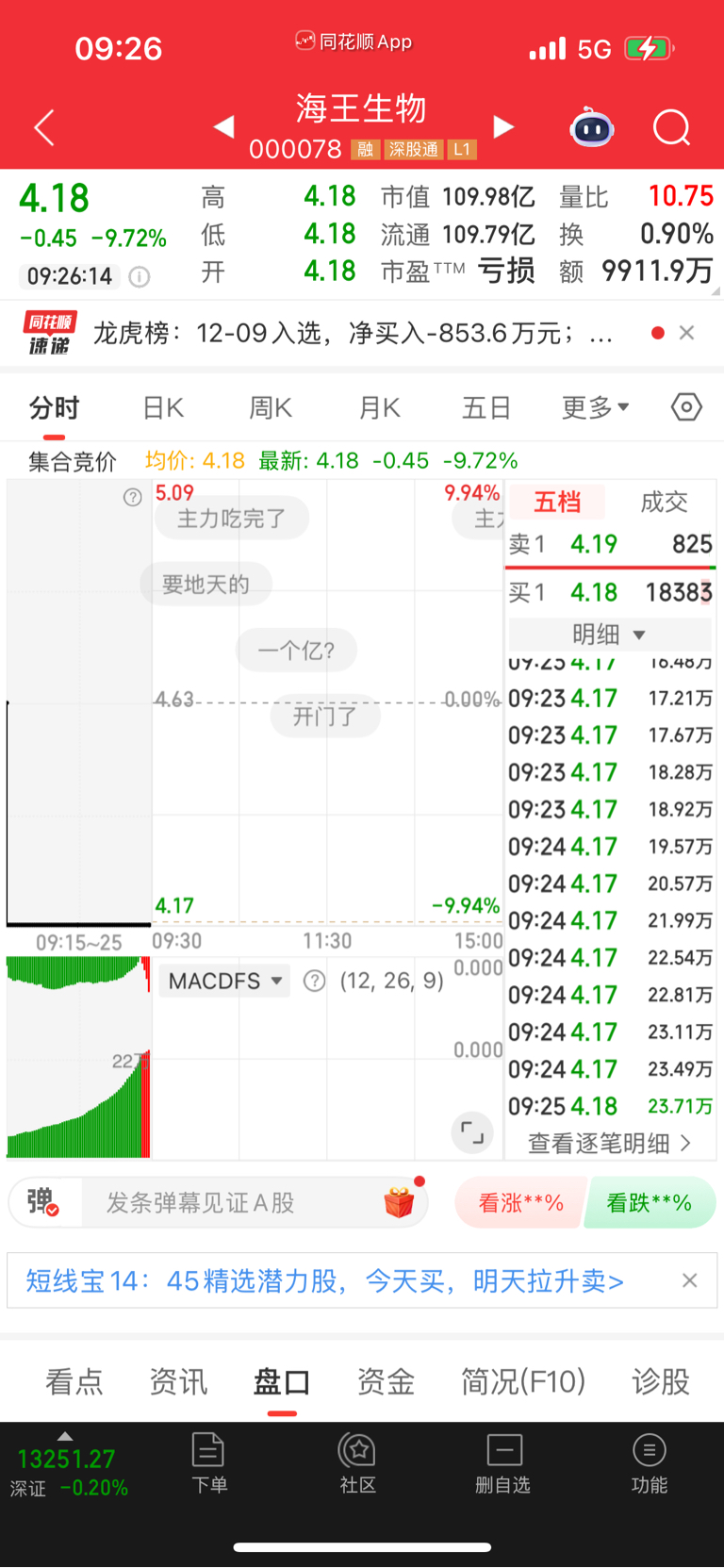 $海王生物(SZ000078)$ 我滴乖乖,跌停瞬间这么多买盘