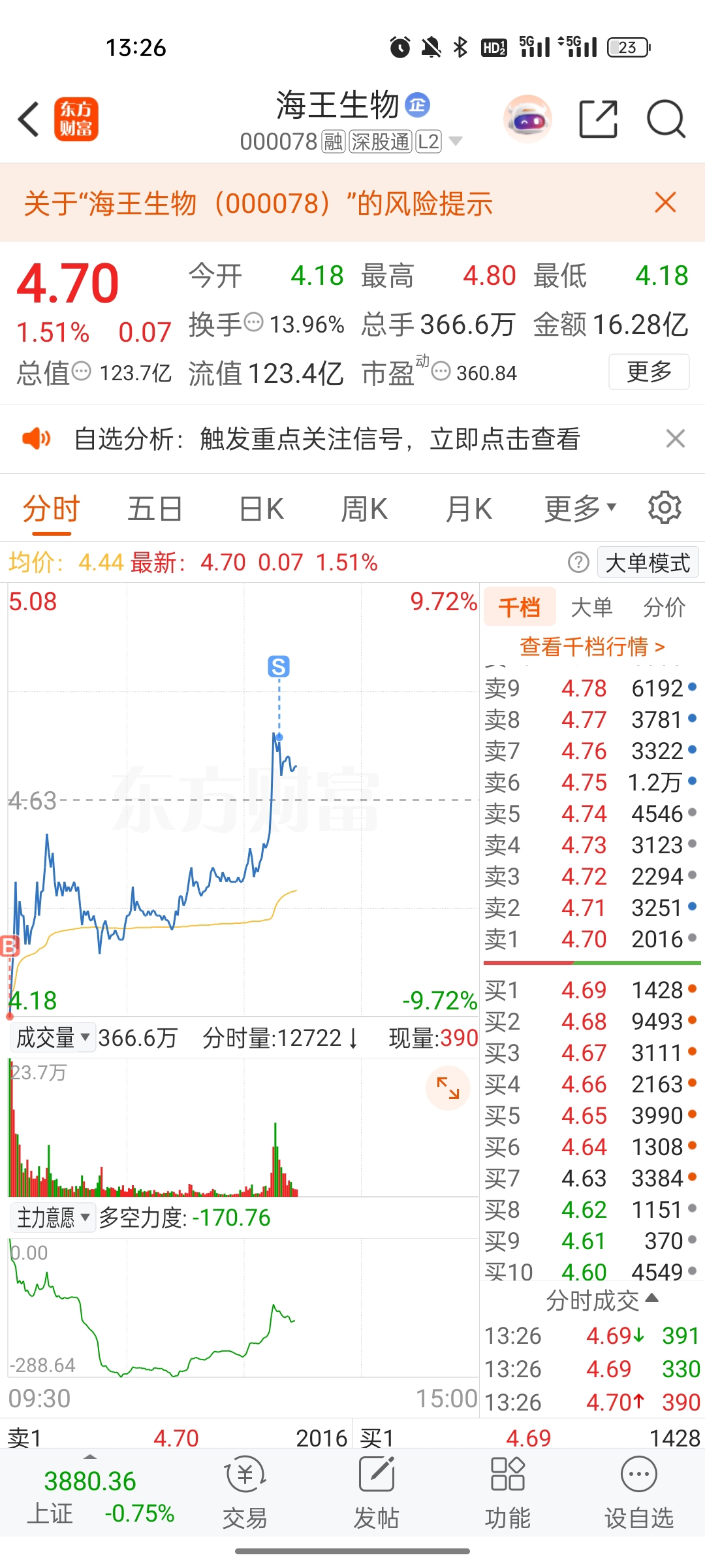 $海王生物(SZ000078)$ 你们继续炒肉,我先撤了