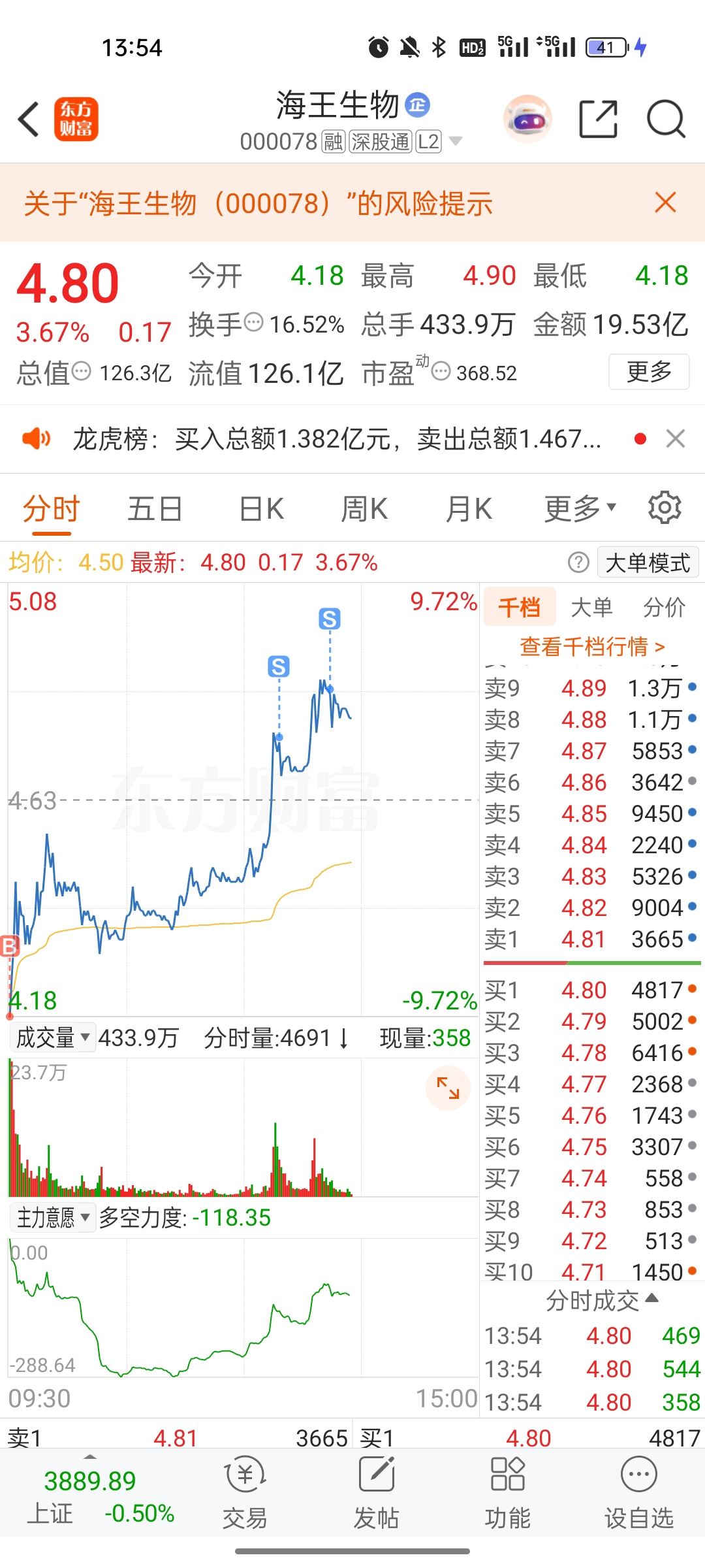 今日海王生物、特发信息完美落袋,青山纸业上了个厕所没t掉,但是明天应该还有冲高