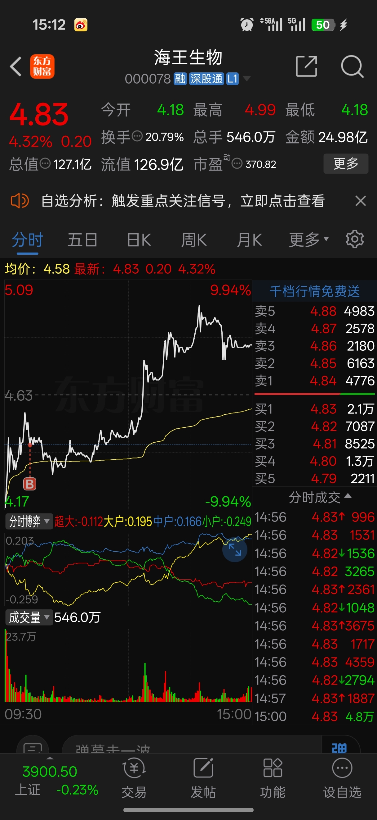 $海王生物(SZ000078)$ 明天涨停会来吗