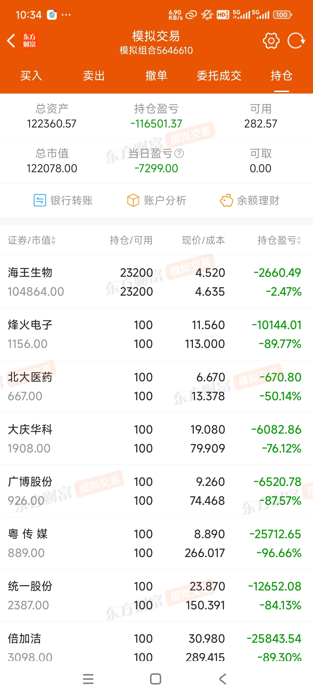 $海王生物(SZ000078)$ 亏2个点,重仓格局