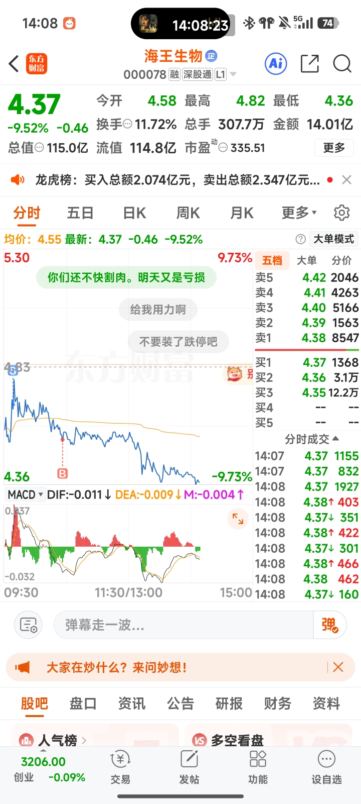$海王生物(SZ000078)$ 我这算啥 ,主力你说说
