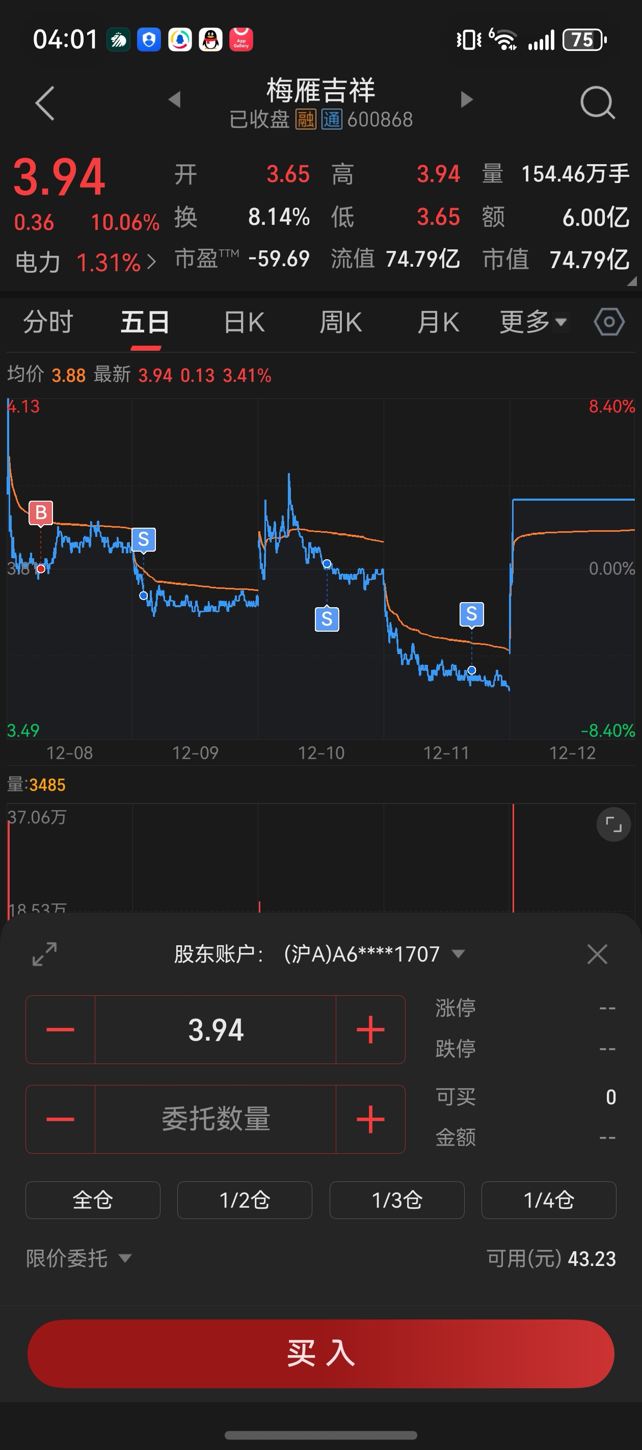 只要我不卖你们都别想涨梅雁我买连跌卖了就涨停