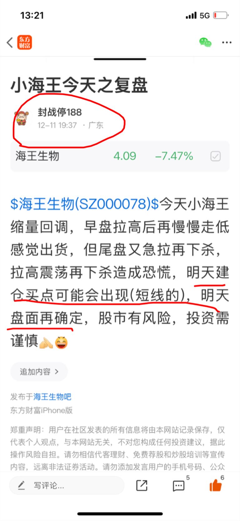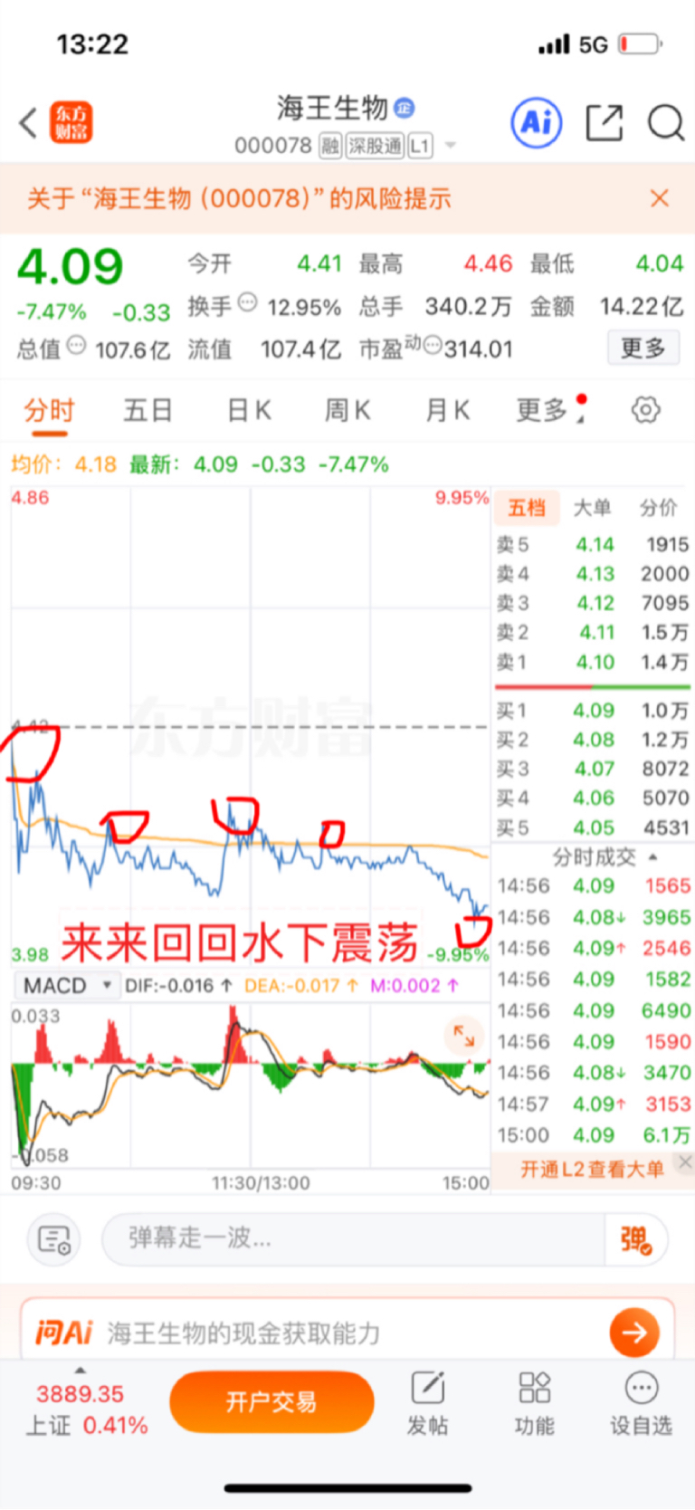 $海王生物(SZ000078)$ 小海王上星期五低开后向下杀然后又拉回,来来回回震荡,缩量大跌,盘面看没建仓,明天是第三天,如果明天低开开盘向下杀,那就建底仓,高开向上冲就观望,股市有风险,投资需谨慎