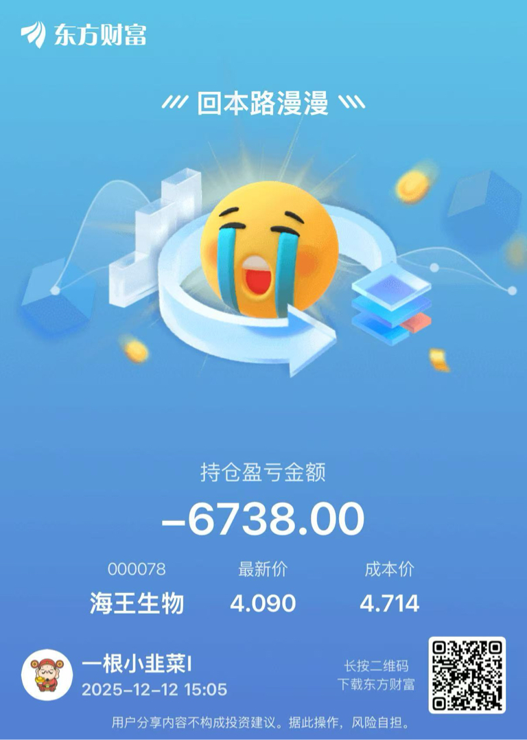 $海王生物(SZ000078)$ 今天再跌说啥都割肉盘路,伤不起了