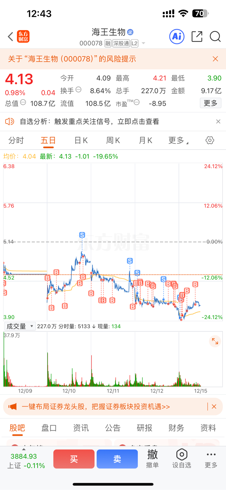 $海王生物(SZ000078)$ 如果消息在3点前出来…