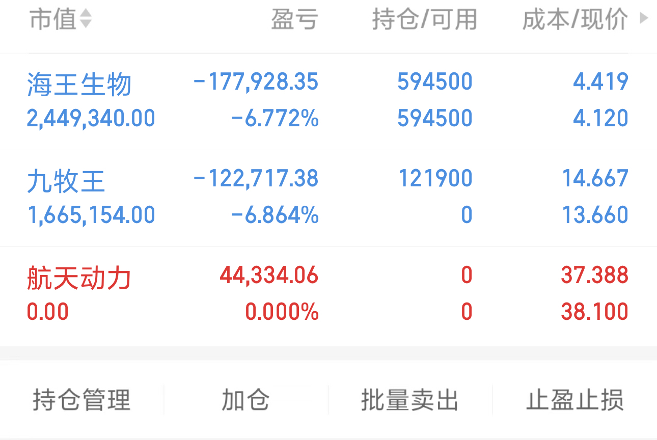 $海王生物(SZ000078)$ $九牧王(SH601566)$ 海王补了两次一直还拿着,也别一直追着怎么怎么弄,九牧王早盘介入后今天也是吃了个跌停不过跟着福建板块资金承接和资金轮动节奏很快,看明天能不能反包起来,我再说一次,没人抓住你们的手操作,别一跌就在这里唉声叹气说这说那,涨的时候无人问津,个人操作,仅供参考,投资有风险需谨慎,多的话不想说,明日再战